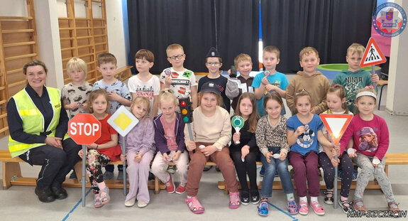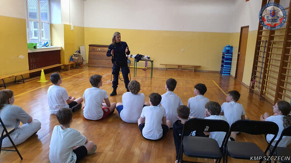 Na zaproszenie dyrekcji Szkoły Podstawowej nr 5 im. Henryka Sienkiewicza przy ul. Królowej Jadwigi 29 w Szczecinie, policjanci z Wydziału Prewencji Komendy Miejskiej Policji w Szczecinie przeprowadzili spotkanie z uczniami klas zerowych oraz pierwszych.