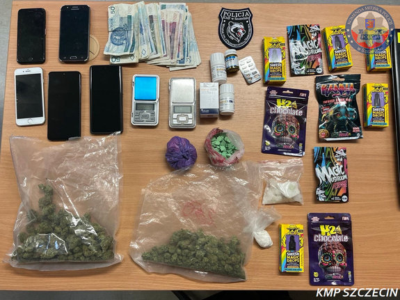 Policjanci z Wydziału do Walki z Przestępczością Narkotykową Komendy Miejskiej Policji w Szczecinie zatrzymali 26 - latka podejrzanego między innymi o przygotowanie do wprowadzenia do obrotu znacznych ilości środków odurzających oraz substancji psychotropowych.