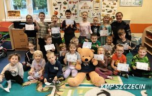 Policjantka z Wydziału Prewencji Komendy Miejskiej Policji w Szczecinie odwiedziła najmłodszych uczniów Szkoły Podstawowej nr 48 im. Kawalerów Orderu Uśmiechu przy ul. Czorsztyńskiej 35. W spotkaniu uczestniczyły dzieci z klasy „0” oraz klasy II „a”.