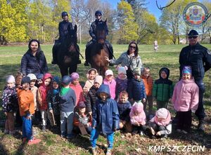 Funkcjonariusze Policji po raz kolejny udowodnili, że edukacja najmłodszych może łączyć naukę z wyjątkowymi doświadczeniami. W Przedszkolu Publicznym nr 72 „Kraina Tuwima” w Szczecinie odbyło się plenerowe spotkanie z udziałem asystenta ds. nieletnich Wydziału Prewencji Komisariatu Policji Szczecin - Niebuszewo oraz policyjnych jeźdźców z sekcji konnej Komendy Wojewódzkiej Policji w Szczecinie.