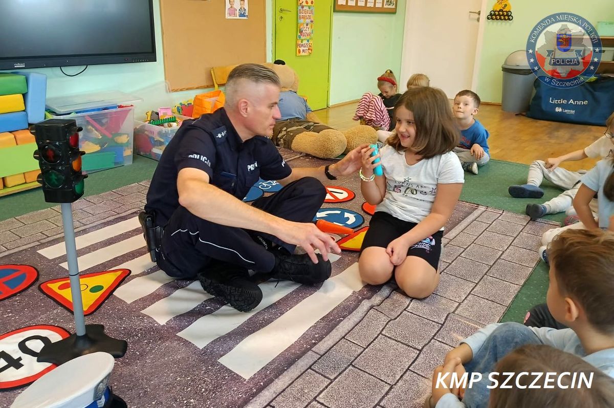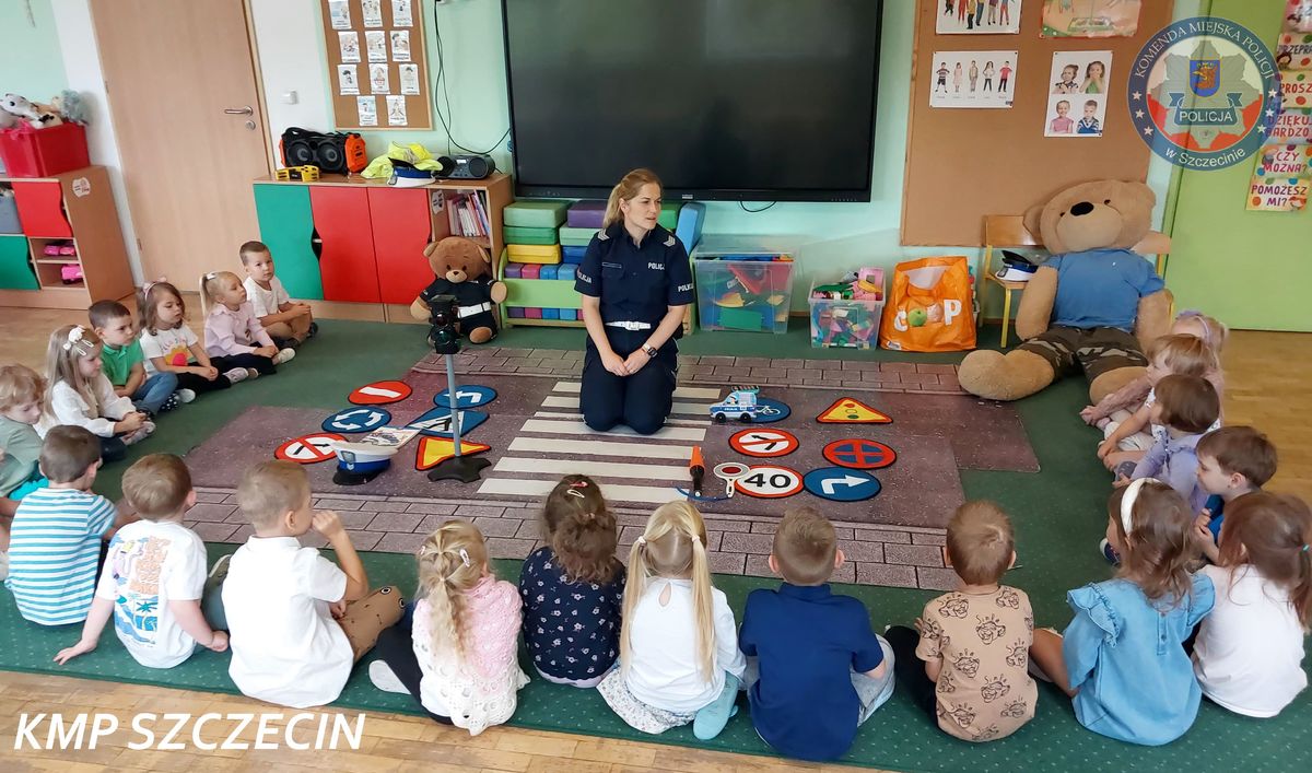 Funkcjonariusze szczecińskiej drogówki regularnie spotykają się z dziećmi, aby od najmłodszych lat kształtować w nich prawidłowe nawyki i postawy na drodze. Wizyta w przedszkolu przy ulicy Bandurskiego była kolejnym elementem tej ważnej misji. Podczas spotkania policjanci w przystępny i atrakcyjny dla maluchów sposób opowiadali o tym, jak bezpiecznie poruszać się po chodniku, przechodzić przez jezdnię oraz jak ważne jest bycie widocznym dla kierowców.