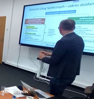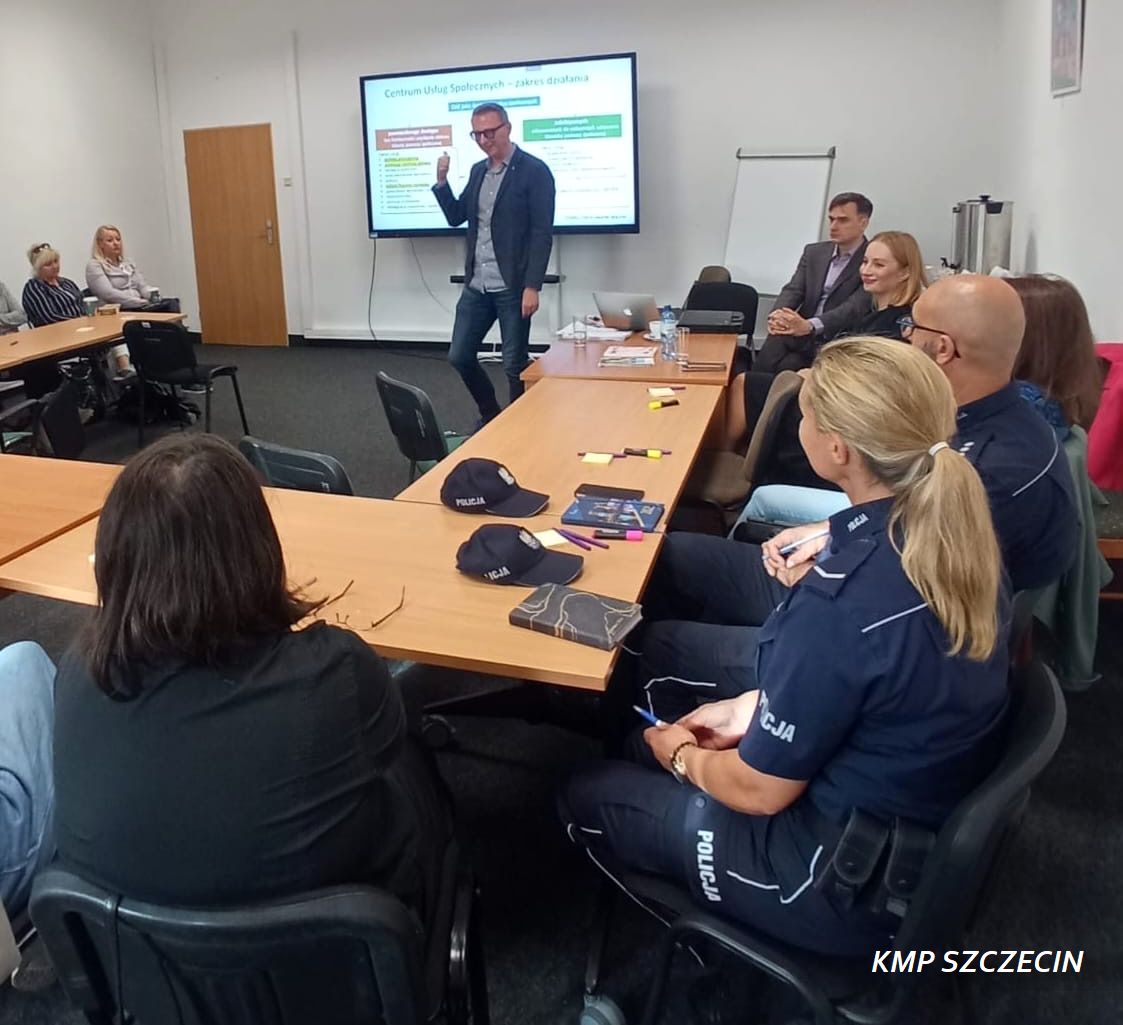 Policjanci Komendy Wojewódzkiej Policji w Szczecinie oraz Komendy Miejskiej Policji w Szczecinie uczestniczyli w spotkaniu w Centrum Usług Społecznych, które powstało w wyniku przekształcenia Miejskiego Ośrodka Pomocy Rodzinie.