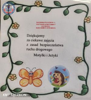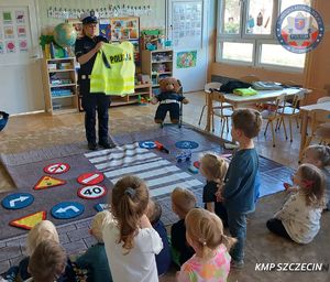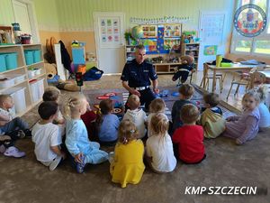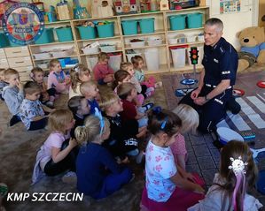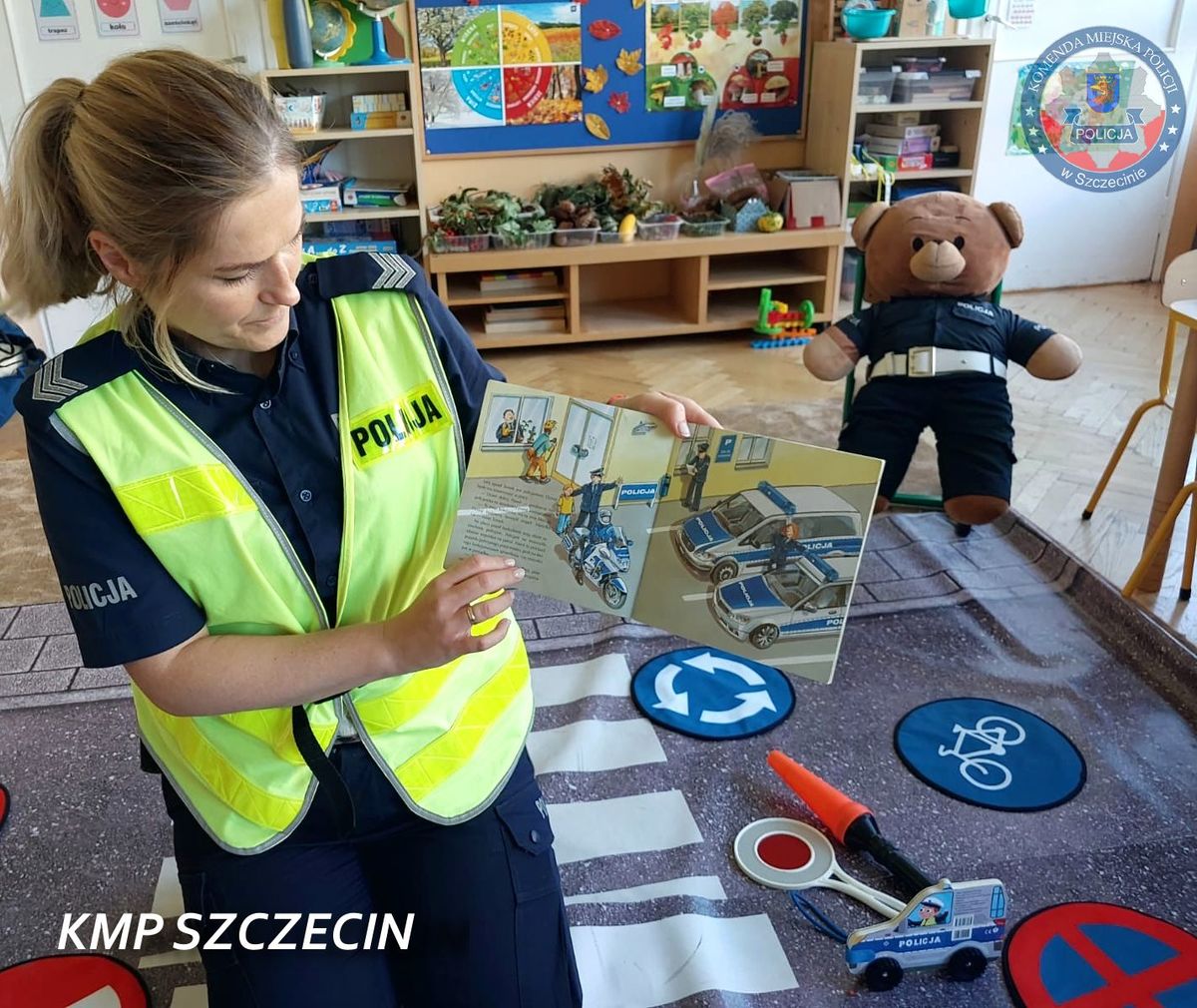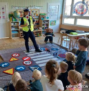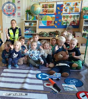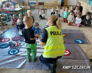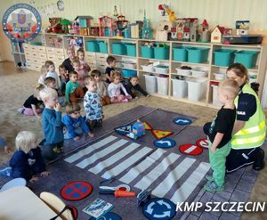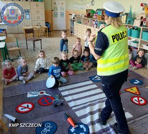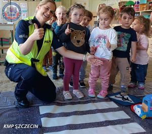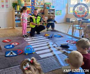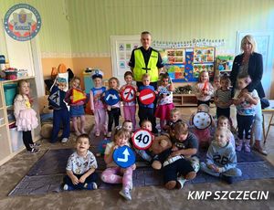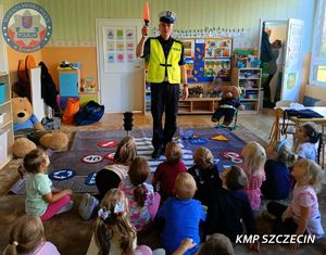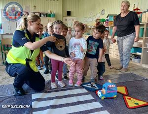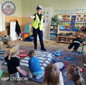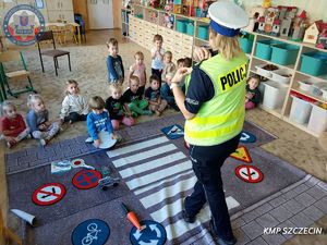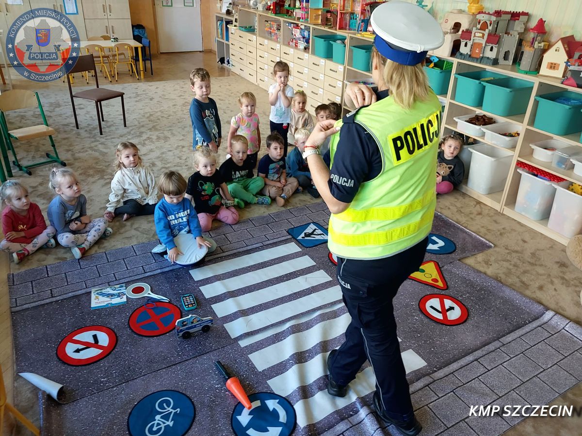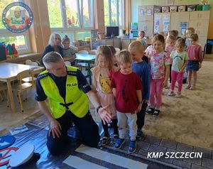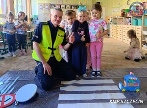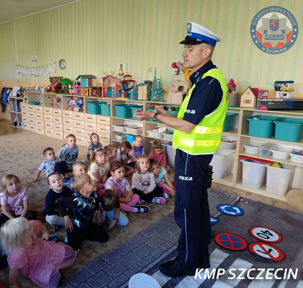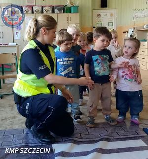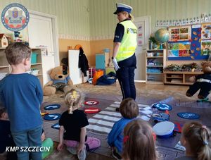 Funkcjonariusze z Wydziału Ruchu Drogowego Komendy Miejskiej Policji w Szczecinie kontynuują działania profilaktyczne wśród najmłodszych uczestników ruchu drogowego. Tym razem odwiedzili dzieci z w Przedszkolu Publicznym nr 58 w Szczecinie.
