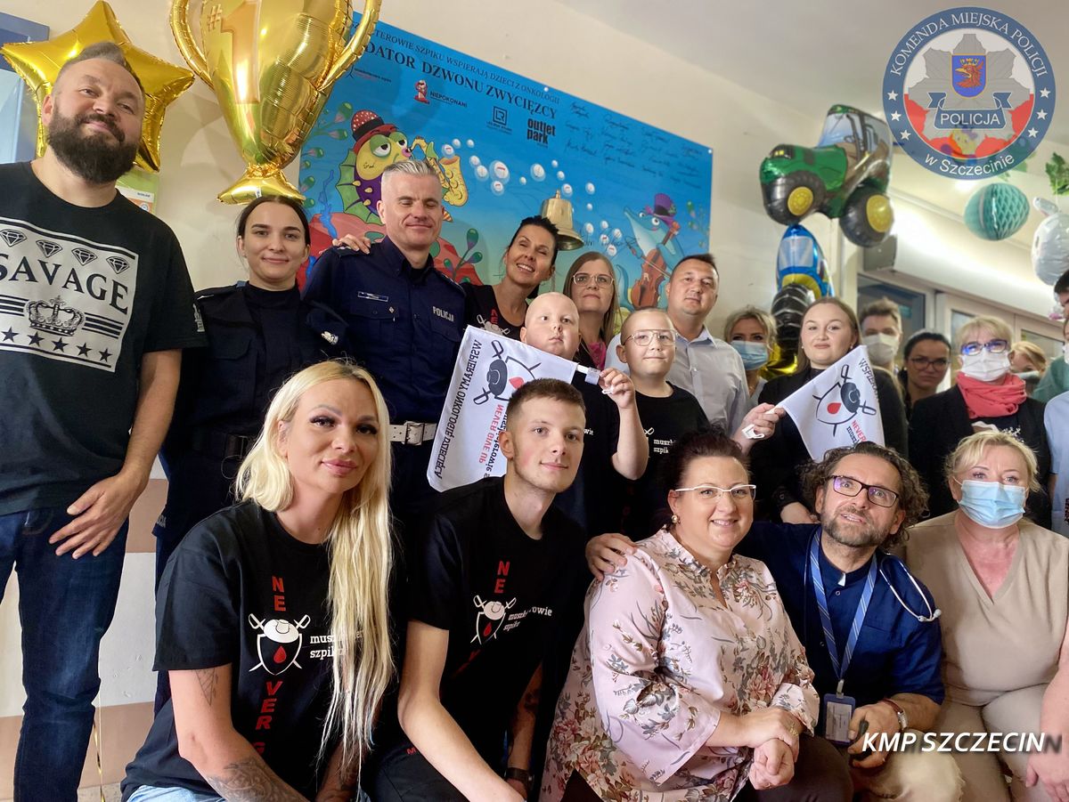 Fundacja „MUSZKIETEROWIE SZPIKU – Never Give Up. Wspieramy onkologię dziecięcą” zorganizowała niezwykłą uroczystość, w której udział wzięli również szczecińscy policjanci. Bohaterem dnia był 12-letni Piotrek, który wraz ze swoim kolegą Maćkiem – poznanym w Klinice Św. Mikołaja – celebrował zakończenie długiego i trudnego leczenia.