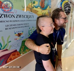 Świętowanie rozpoczęło się już od hotelu, skąd Piotrek przejechał w policyjnej eskorcie, przy fanfarach i w wyjątkowej oprawie, prosto do Kliniki. Na miejscu czekał na chłopców czerwony dywan, kolorowe balony oraz wzruszony personel medyczny. Najbardziej symboliczny moment nastąpił wtedy, gdy Piotrek z dumą uderzył w „dzwon zwycięstwa”, a następnie złożył swój podpis na „tablicy zwycięzców” – miejscu, które inspiruje wszystkich pacjentów do walki o zdrowie.