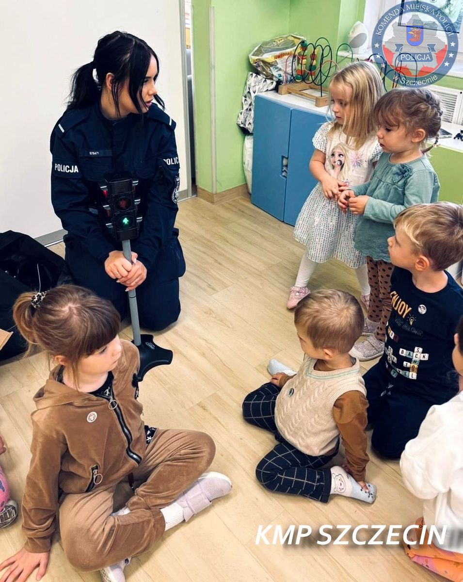 Podczas wizyty przedszkolaki dowiedziały się, jak dbać o swoje bezpieczeństwo, jak prawidłowo zachowywać się na drodze oraz kogo prosić o pomoc w trudnych sytuacjach. Zajęcia miały formę rozmowy i zabawy, dzięki czemu najmłodsi chętnie angażowali się w spotkanie i zdobywali nowe, ważne umiejętności.