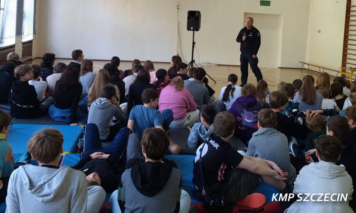 Asystent do Spraw Nieletnich KP Szczecin Niebuszewo odwiedził młodzież z Szkoły Podstawowej nr 46 mieszczącej się w Szczecinie przy ul. Felczaka 13, gdzie jednym z głównych tematów spotkania był temat związana „Cyberdzunglą”, a także temat „mowa nienawiści”.