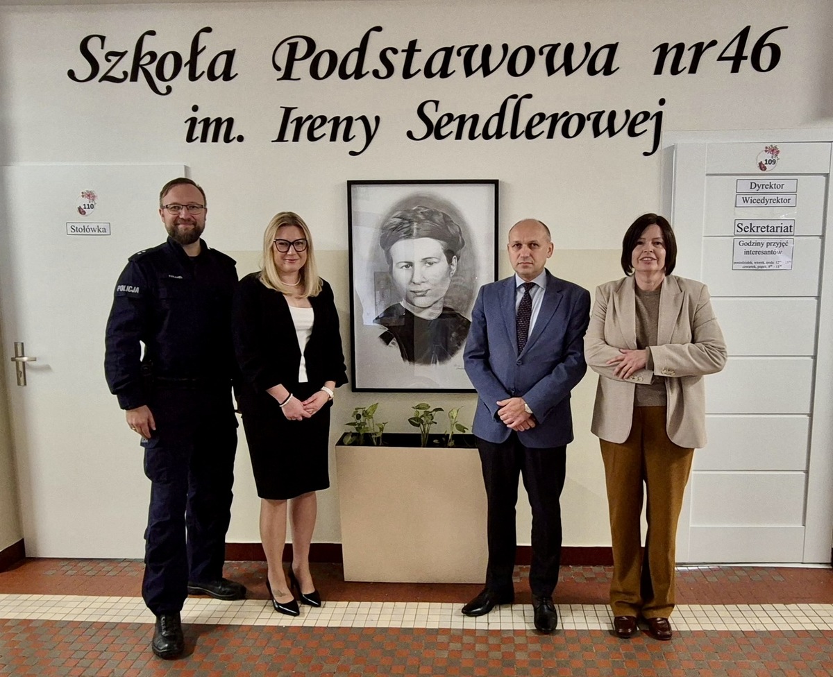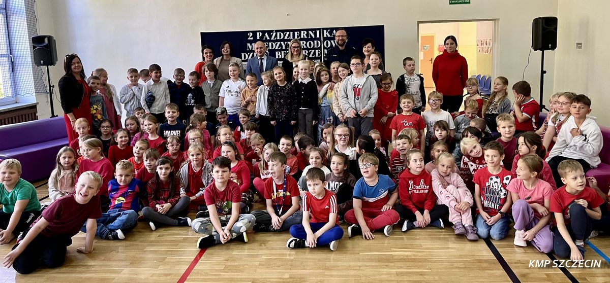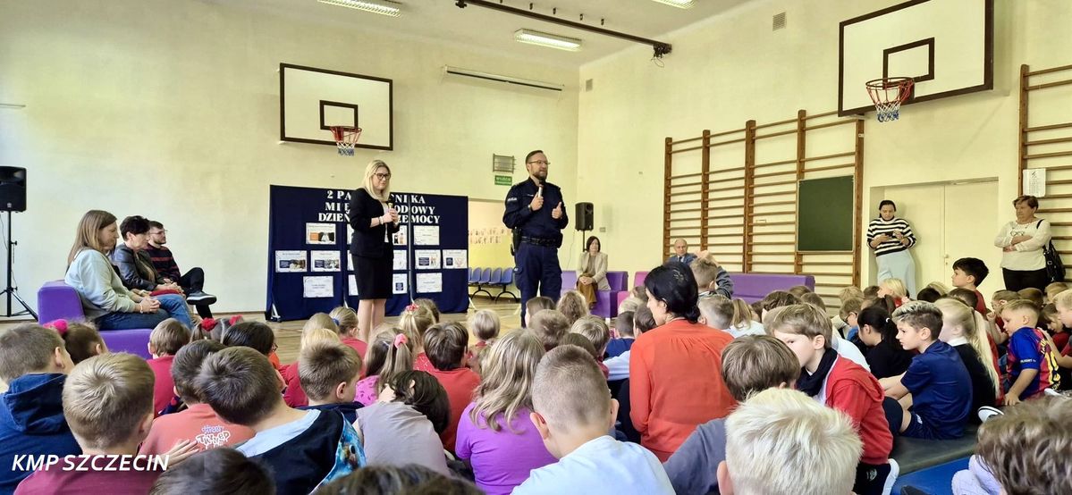 Do współudziału w tym niezwykle ważnym wydarzeniu została zaproszona Komenda Miejska Policji w Szczecinie. Podkomisarz Paweł Krahel z Wydziału Prewencji w obecności dyrektora oraz grona pedagogicznego i Zachodniopomorskiego Kuratora Oświaty przeprowadził zajęcia edukacyjne dla najmłodszych dzieci w Szkole Podstawowej nr 46 im. Ireny Sendlerowej.