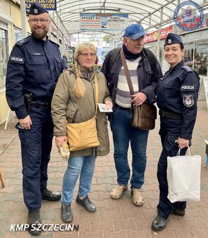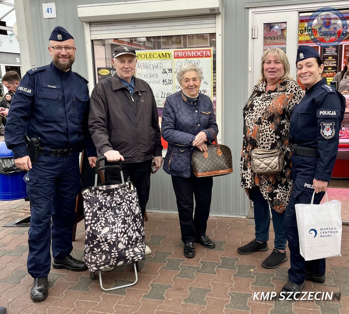 Policjanci z Wydziału Prewencji Komendy Miejskiej Policji w Szczecinie ponownie przeprowadzili działania edukacyjne w ramach programu profilaktycznego „Rozsądny Senior”. Tym razem funkcjonariusze spotkali się z mieszkańcami podczas ich codziennych zakupów — na szczecińskim rynku, gdzie licznie pojawiają się seniorzy. To właśnie tam policjanci mieli okazję porozmawiać z osobami starszymi o zagrożeniach, na jakie mogą być narażone.