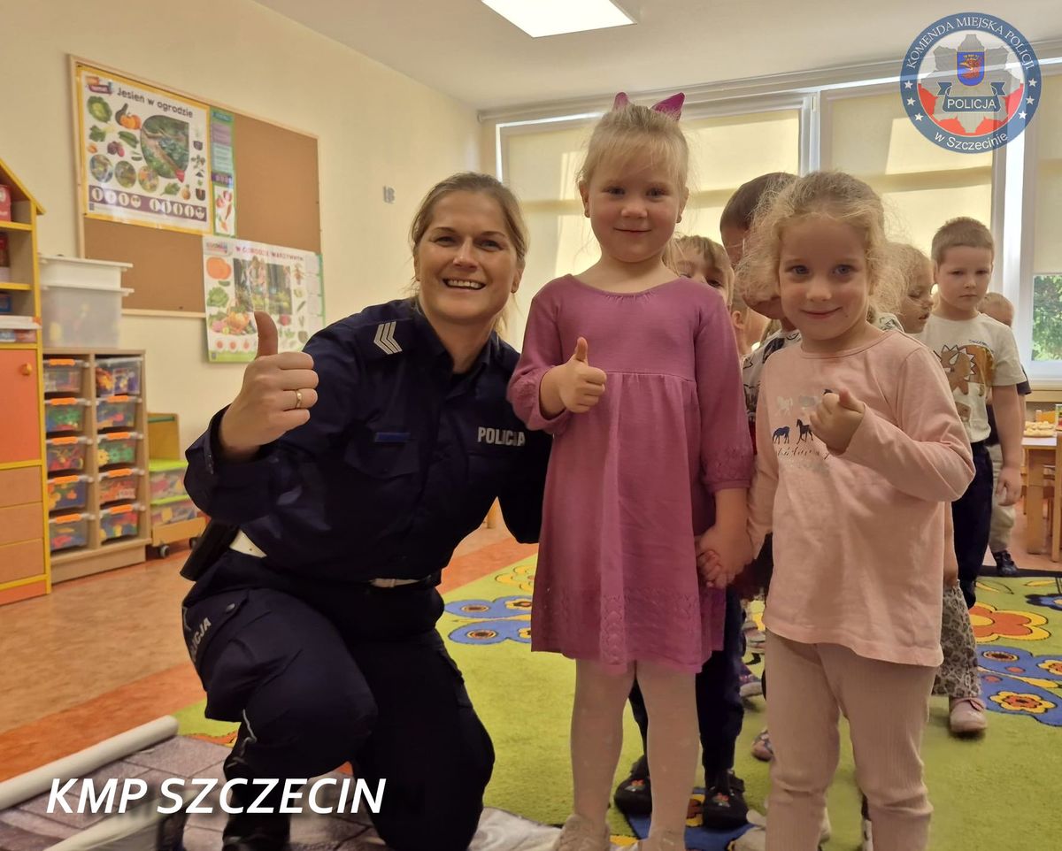 Policjantka z drogówki i Miś Henio ponownie wśród najmłodszych – tym razem w Przedszkolu nr 48 w Szczecinie