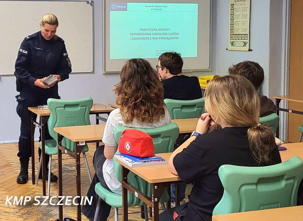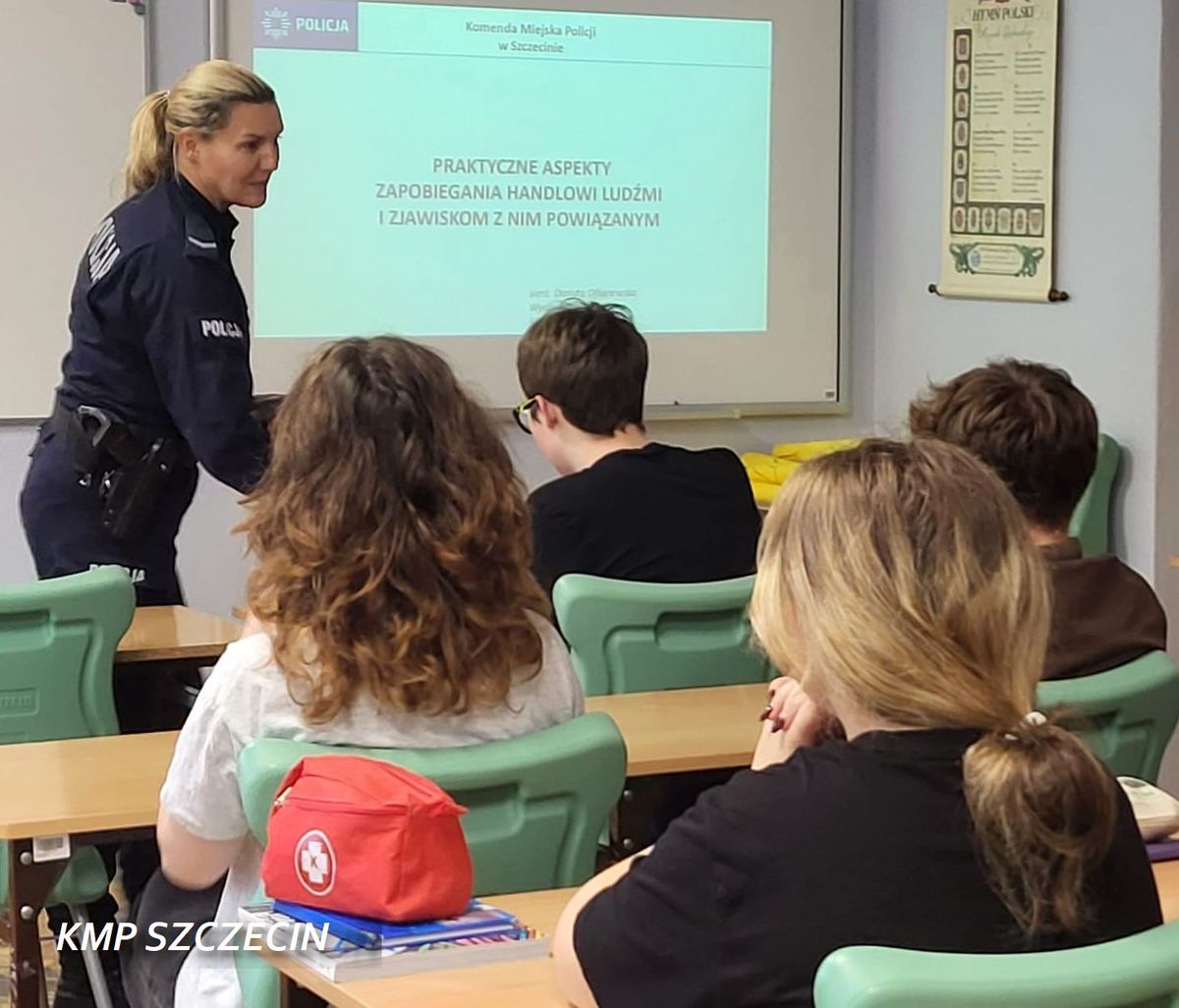 O tym, że handel ludźmi wiąż stanowi realne zagrożenie dla współczesnego społeczeństwa przekonali się licealiści Liceum Ogólnokształcącego z Oddziałami Integracyjnymi w Szczecinie oraz Technikum Łączności i Multimediów Cyfrowych w Szczecinie na spotkaniu poświęconym tej tematyce. Formy tego zjawiska, metody działania sprawców ale przede wszystkim sposoby zabezpieczenia się przed nim, to informacje przekazane przez funkcjonariuszkę szczecińskiej Policji młodym słuchaczom.