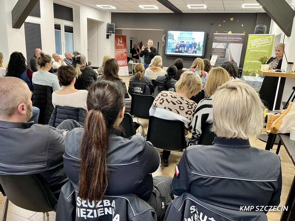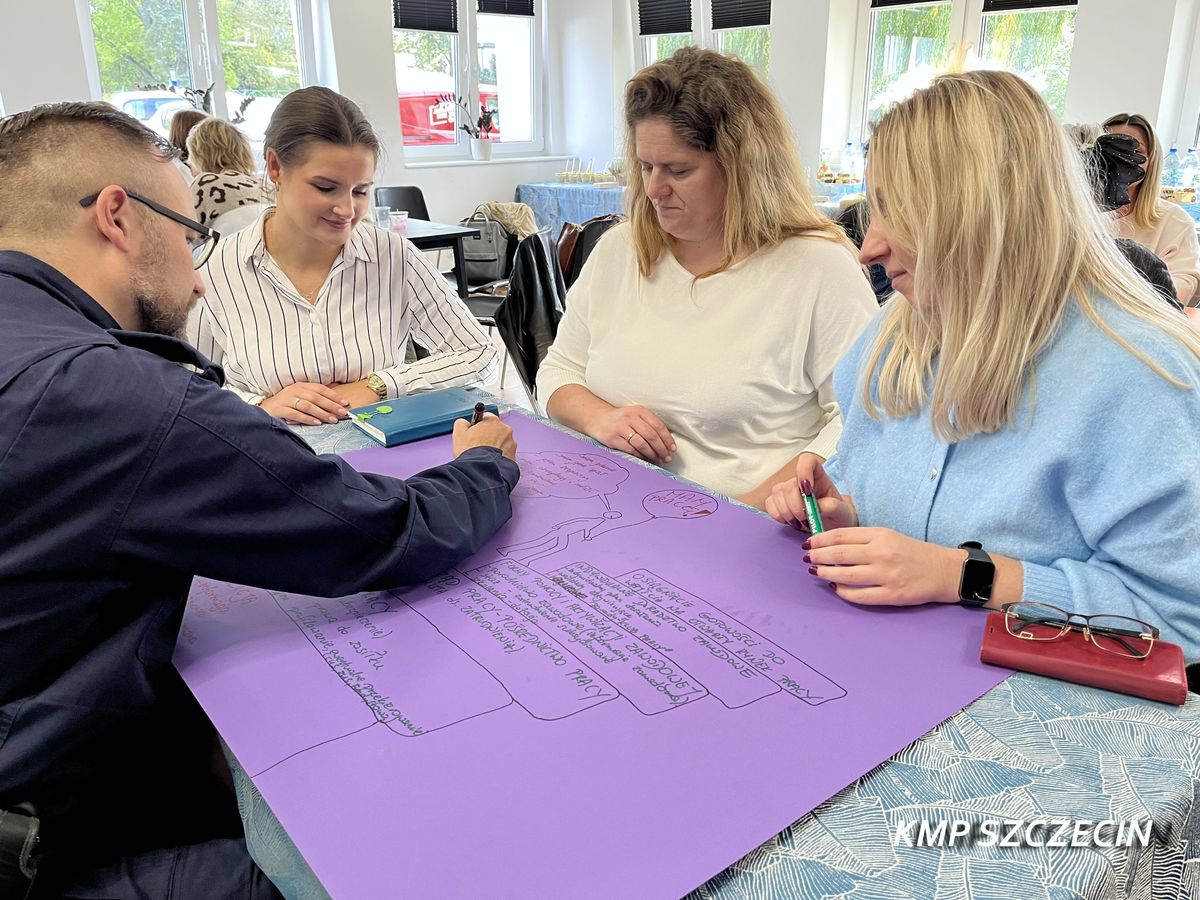 W spotkaniu edukacyjnym połączonym z warsztatami manualnymi oprócz funkcjonariuszy Policji uczestniczyli również funkcjonariusze Służby Więziennej, pracownicy Urzędów Pracy, Centrów Usług Społecznych oraz szczecińskich sądów.