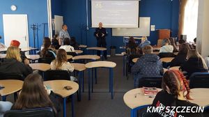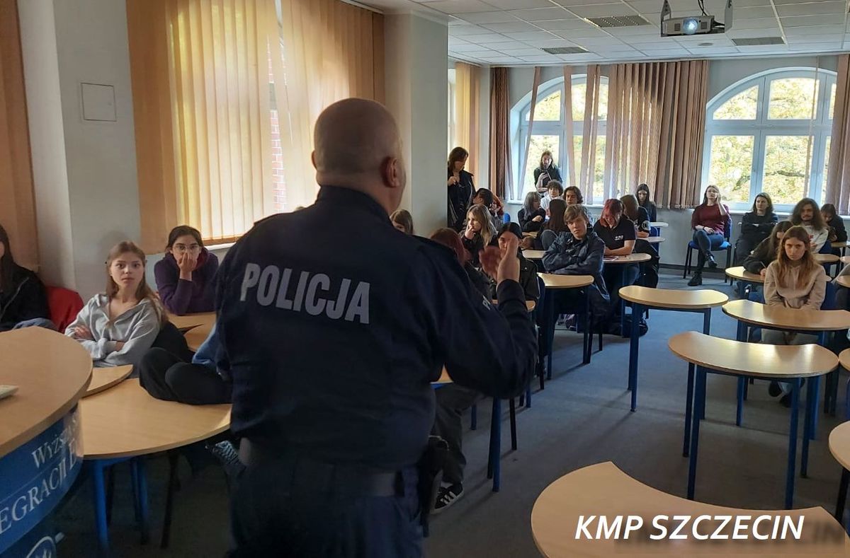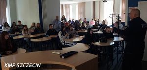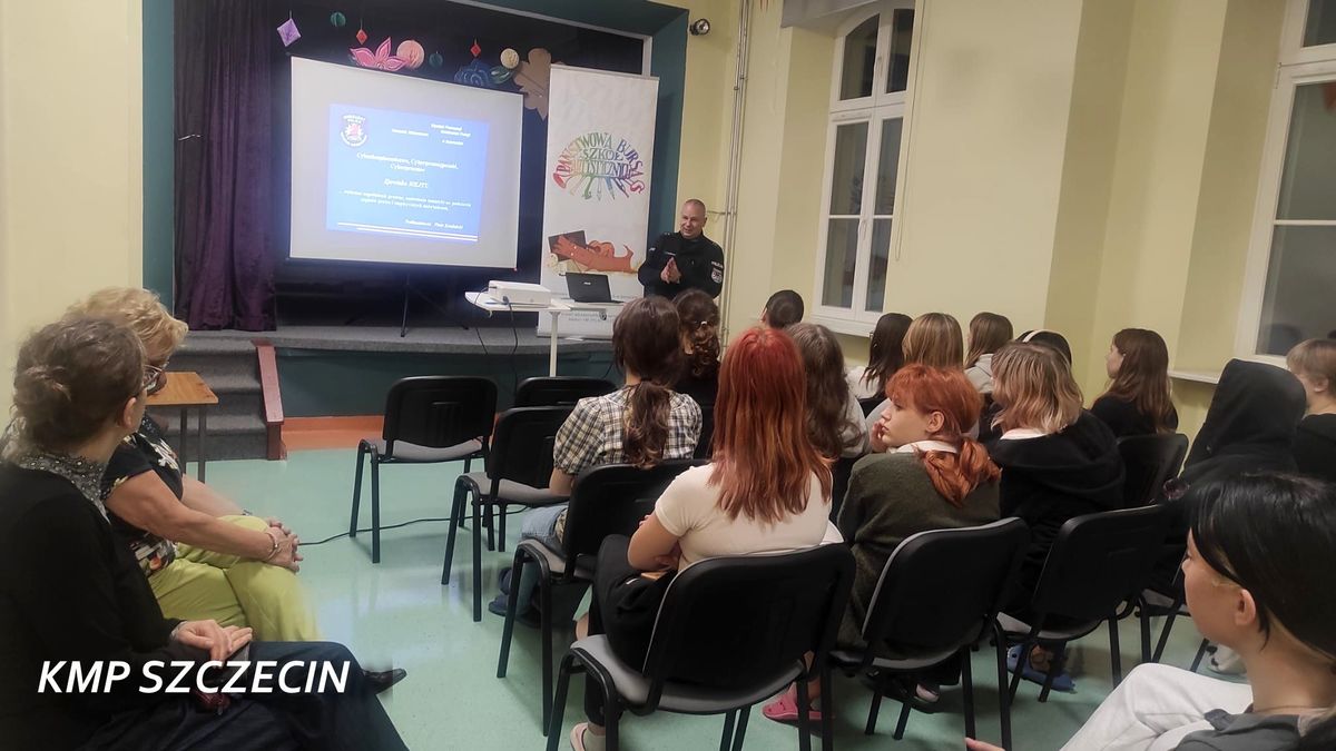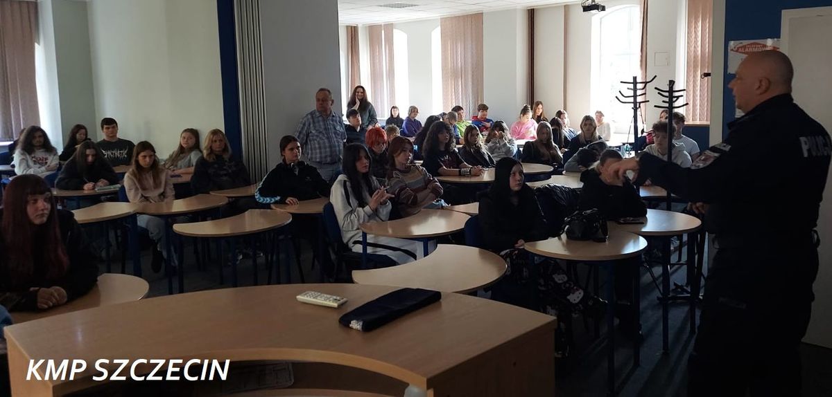 Policjanci z Komisariatu Policji Szczecin Niebuszewo przeprowadzili spotkanie edukacyjne z uczniami Szkoły Branżowej przy ul. Mickiewicza 47 w Szczecinie oraz Państwowej Bursie Szkół Muzycznych.