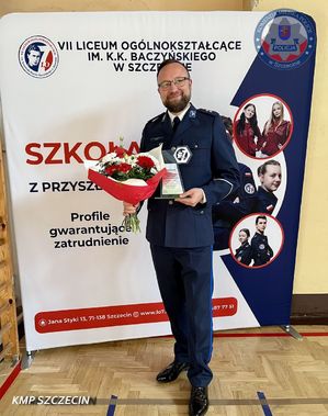 Funkcjonariusz Wydziału Prewencji KMP w Szczecinie od ponad pięciu lat wspiera innowacyjne programy edukacyjne w klasach mundurowych VII Liceum Ogólnokształcącego oraz jest opiekunem młodzieży z klas policyjnych.