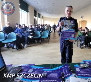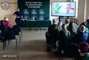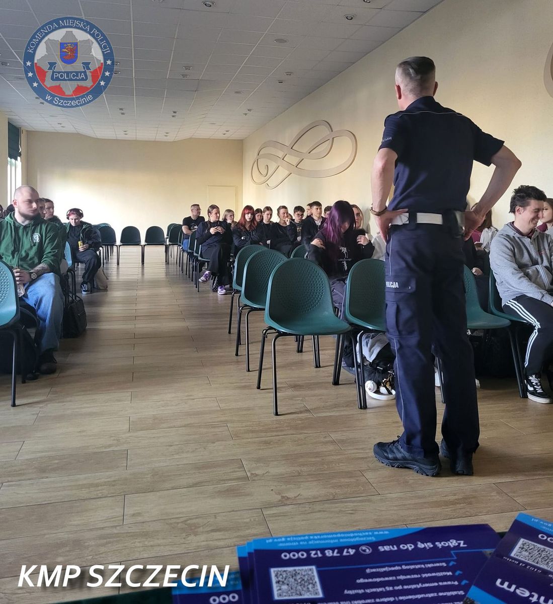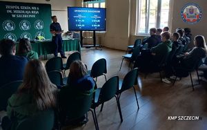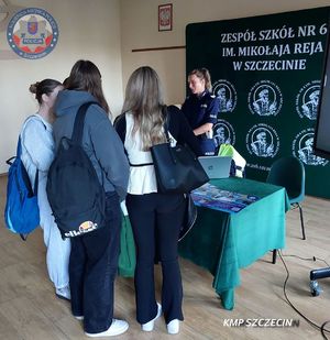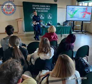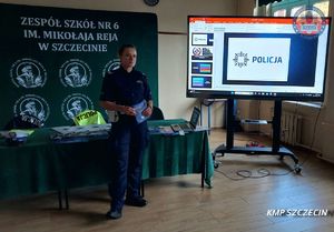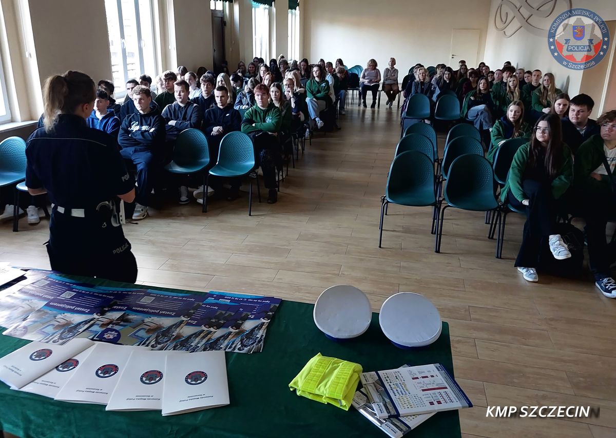 Funkcjonariusze Wydziału Ruchu Drogowego Komendy Miejskiej Policji w Szczecinie spotkali się z młodzieżą z Zespołu Szkół nr 6 przy ul. Sowińskiego, by przybliżyć specyfikę służby w policji i zachęcić do wstąpienia w jej szeregi.