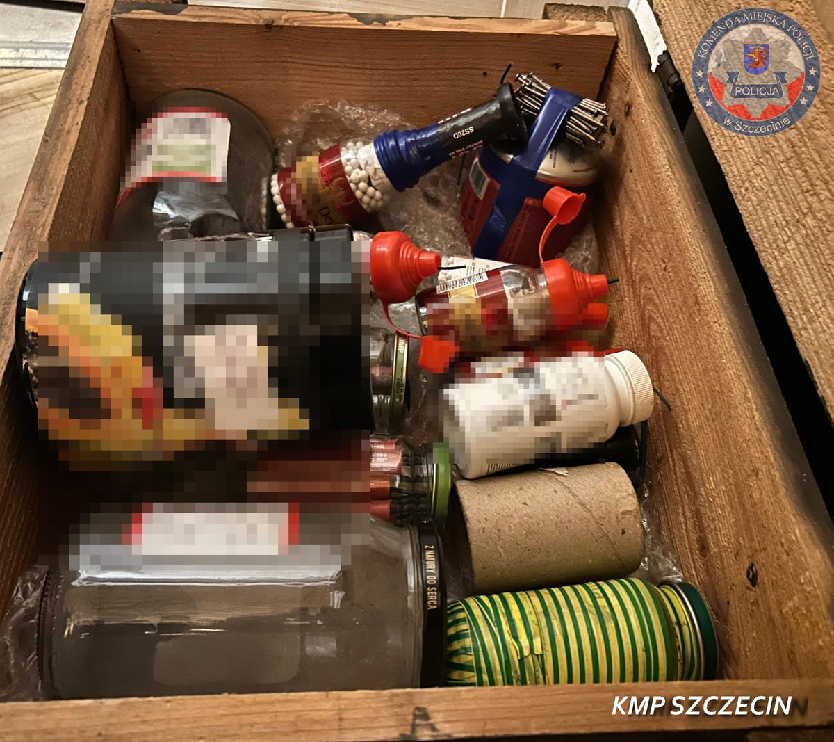 W czwartek wieczorem kryminalni z Komisariatu Policji Szczecin–Niebuszewo wraz z policjantami z Wydziału Wywiadowczego KMP w Szczecinie zatrzymali głównego prowodyra — 25-latka. W jego mieszkaniu policjanci ujawnili i zabezpieczyli materiały pirotechniczne oraz substancje i urządzenia wybuchowe, które mężczyzna amatorsko wytwarzał. Zebrane dowody pozwoliły przedstawić mu dwa zarzuty; decyzją sądu 25-latek został tymczasowo aresztowany na 3 miesiące.