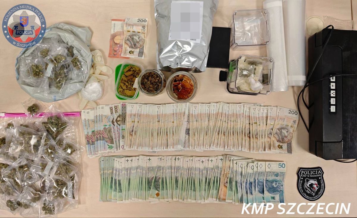 Podczas czynności funkcjonariusze zabezpieczyli również gotówkę, wagę elektroniczną, zgrzewarkę oraz telefony komórkowe. Mężczyzna usłyszał zarzuty wprowadzania do obrotu znacznych ilości środków odurzających w warunkach recydywy. Komendant Komisariatu Policji Szczecin – Pogodno wystąpił z wnioskiem o trzymiesięczny areszt, prokurator go poparł, a Sąd się przychylił.