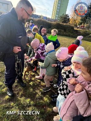 Duże zainteresowanie wzbudziła prezentacja przewodnika psa służbowego, który opowiedział o szkoleniu i pracy policyjnego czworonoga oraz zaprezentował wybrane umiejętności psa służbowego. Dzieci poznały także zasady bezpiecznego zachowania w obecności zwierząt pracujących w służbach.