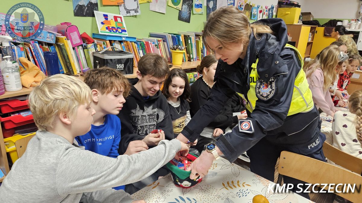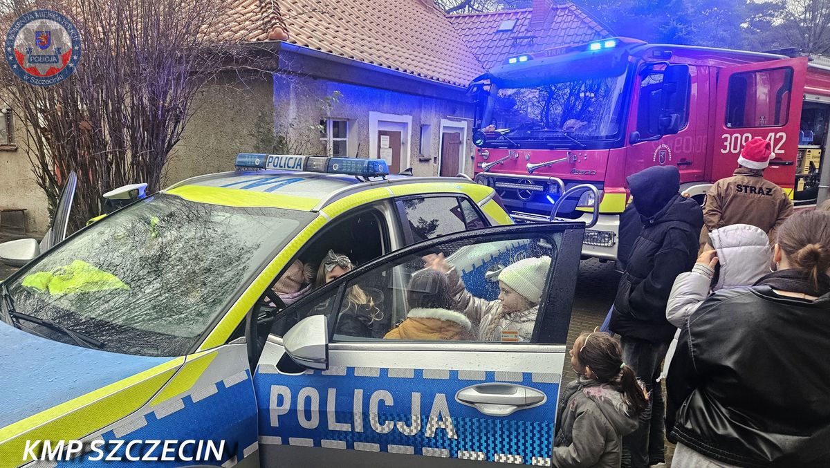 Policjanci z Komendy Miejskiej Policji w Szczecinie wraz ze strażakami z Komendy Miejskiej Straży Pożarnej i OSP Śmierdnica odwiedzili dzieci ze Świetlicy Środowiskowej i Domu Samotnej Matki w Płoni, przekazując prezenty i rozmawiając o bezpieczeństwie.