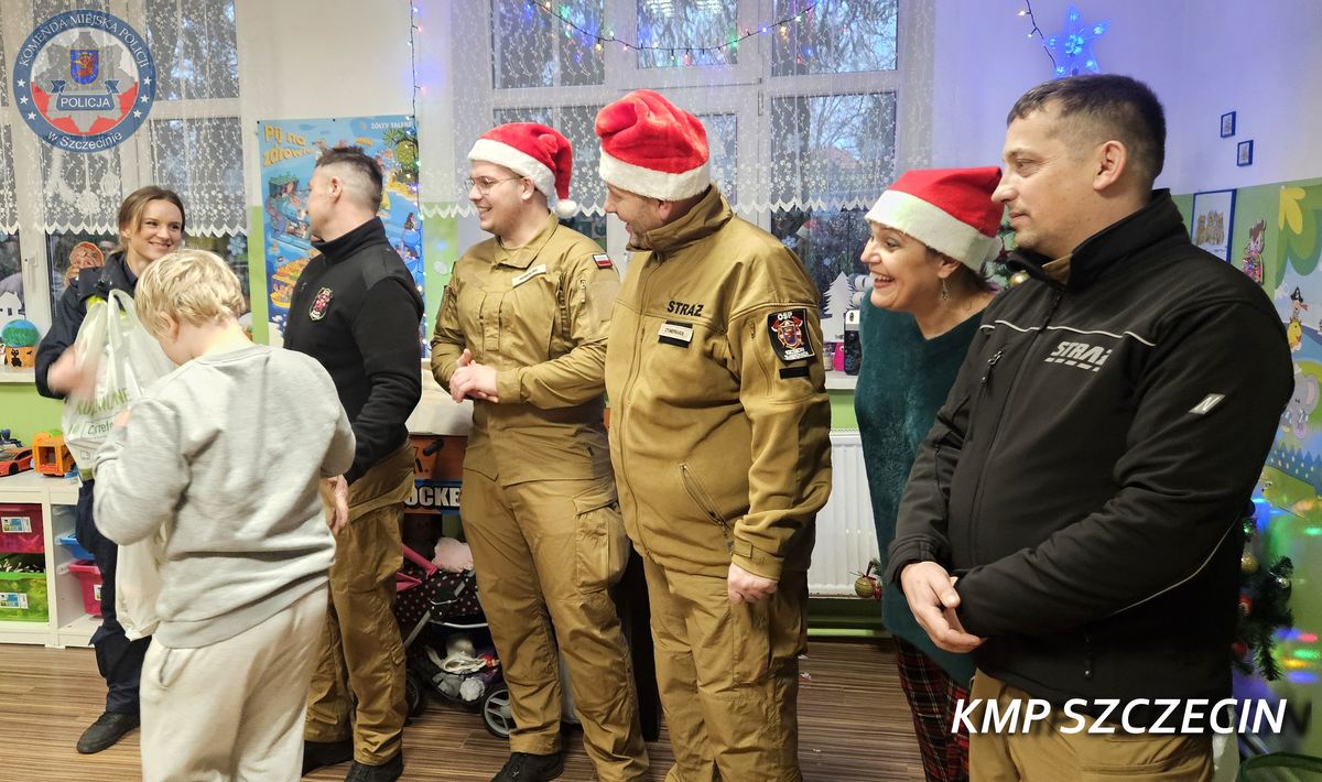 Święta to wyjątkowy czas, który w tym roku służby mundurowe postanowiły spędzić wspólnie z najmłodszymi mieszkańcami Płoni. Policjanci z Komendy Miejskiej Policji w Szczecinie, strażacy z Komendy Miejskiej Straży Pożarnej w Szczecinie oraz druhowie z OSP Śmierdnica odwiedzili dzieci ze Świetlicy Środowiskowej i Domu Samotnej Matki Caritas Archidiecezji Szczecińsko-Kamieńskiej.
