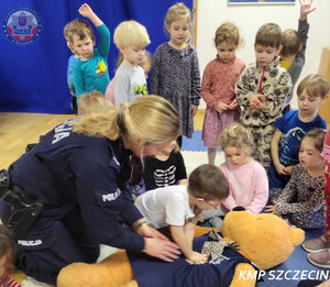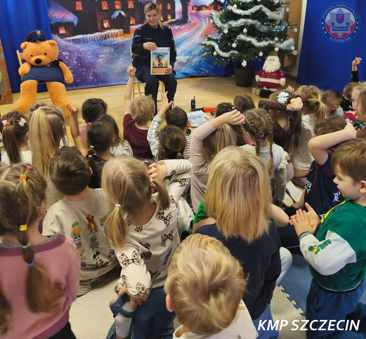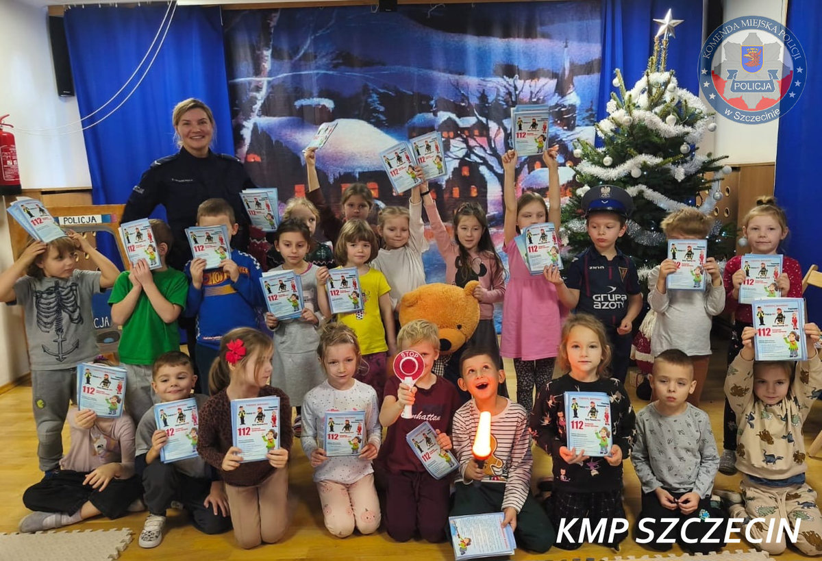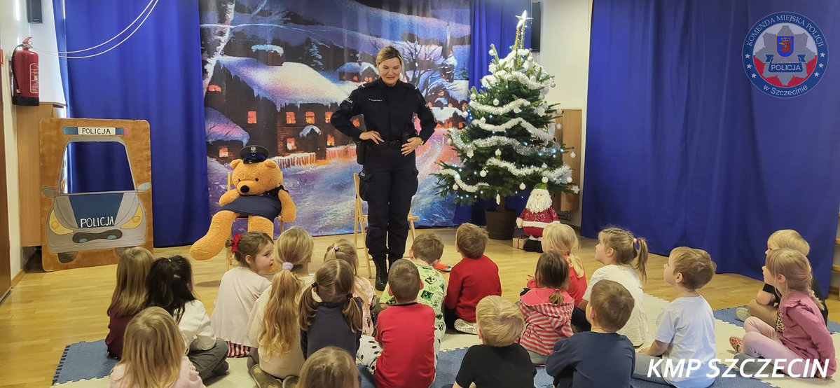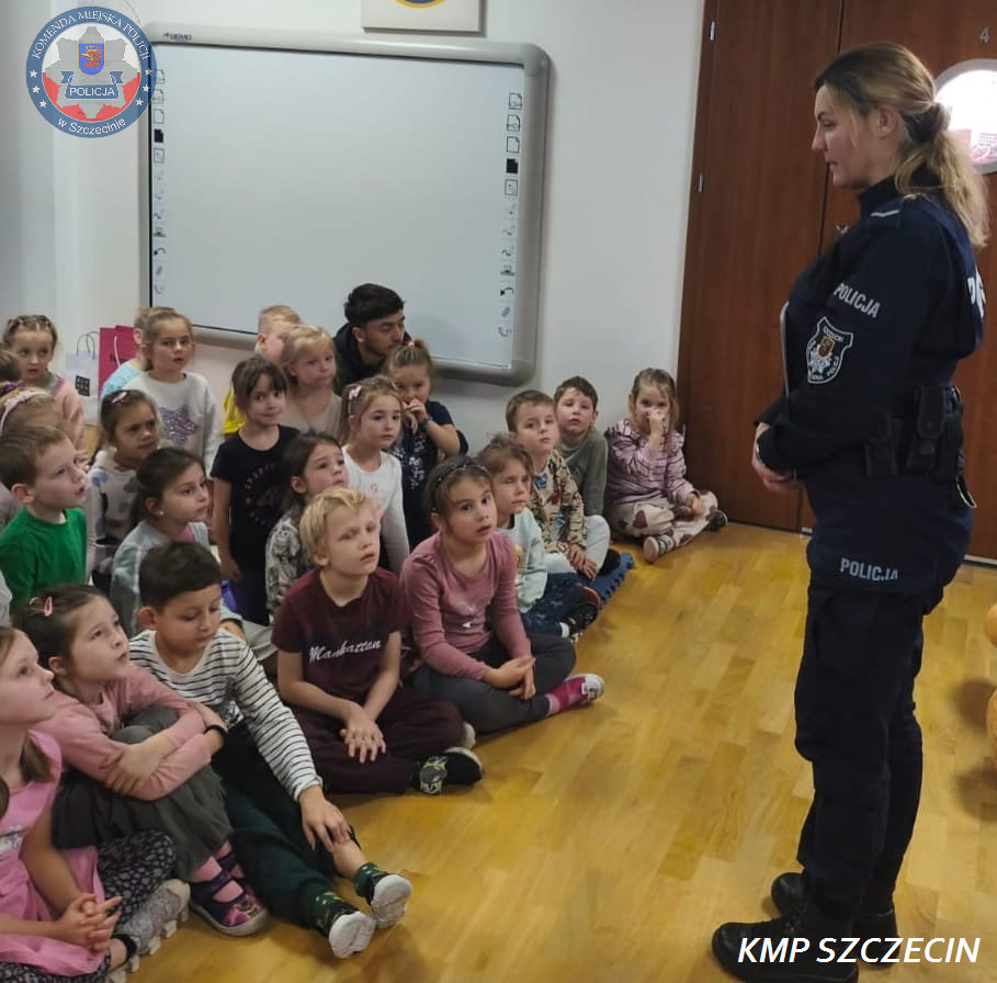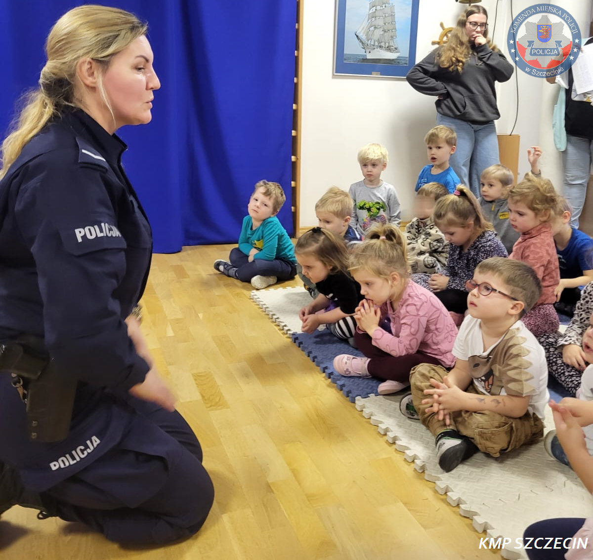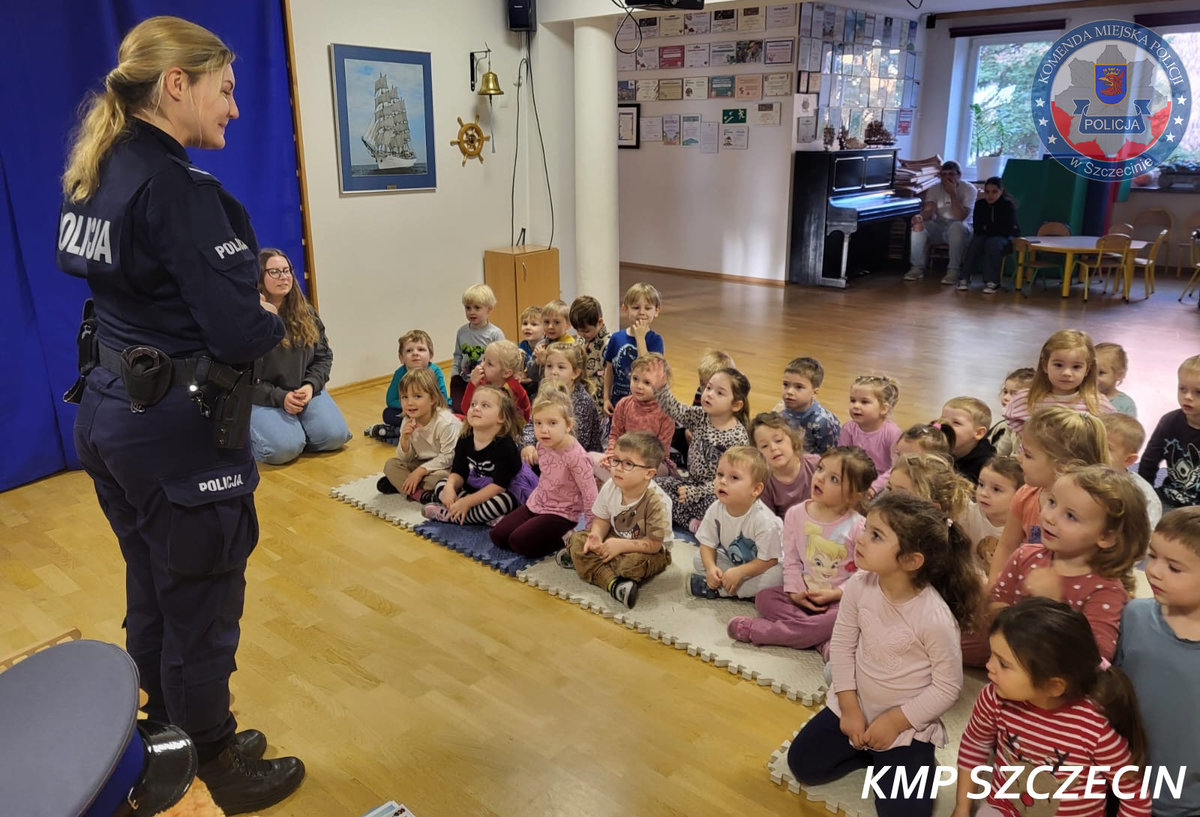 Do Przedszkola nr 27 zawitała funkcjonariuszka policji Wydziału Prewencji Komendy Miejskiej Policji w Szczecinie, która spotkała się ze wszystkimi przedszkolakami - łącznie aż 120 dziećmi. Podczas wizyty opowiedziała o swojej pracy oraz przypomniała najmłodszym zasady bezpieczeństwa.