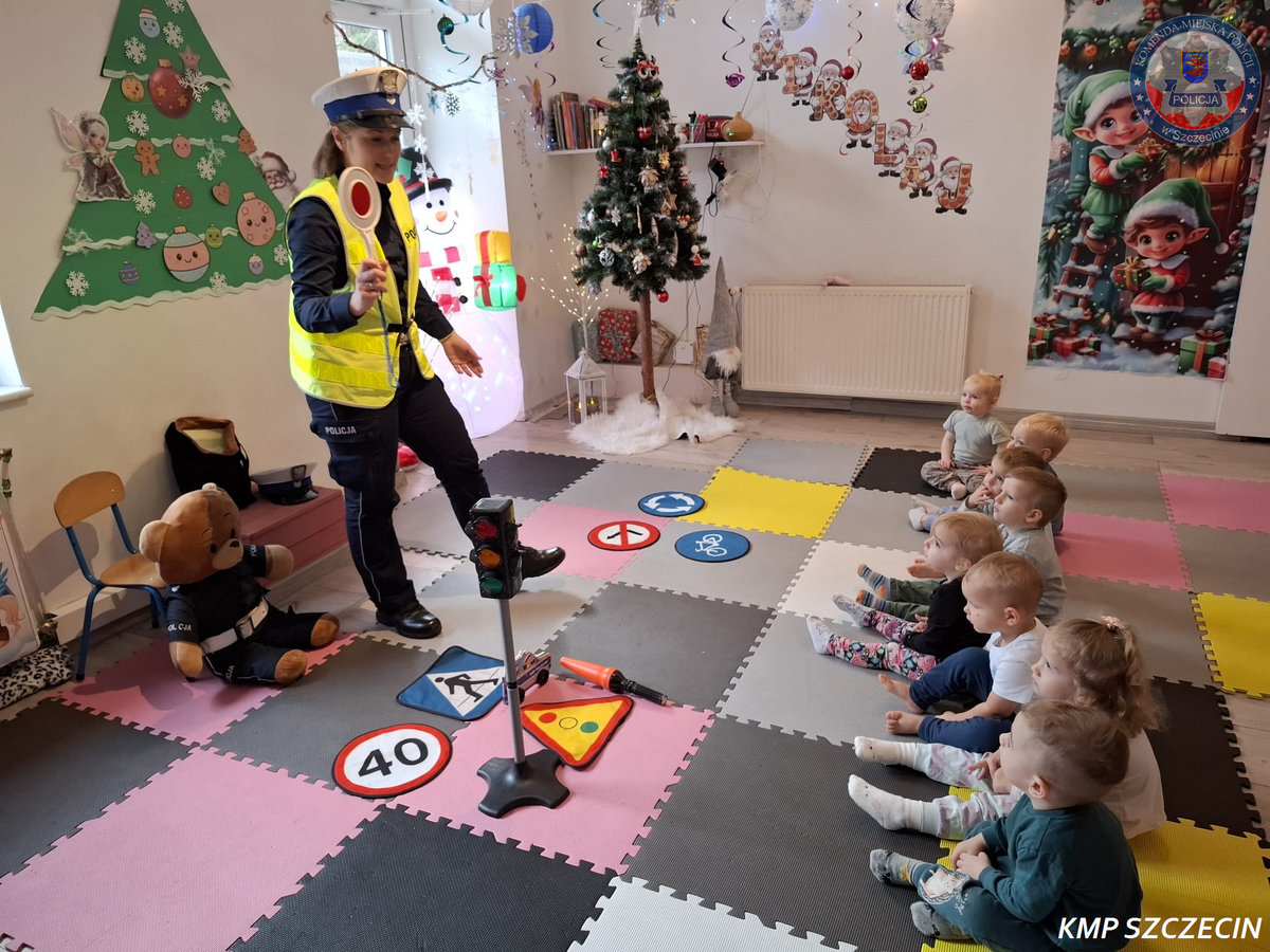 Na zakończenie każdy maluch otrzymał świąteczny upominek – odblaskowego misia, który ma przypominać o bezpieczeństwie na drodze i poprawiać widoczność po zmroku.