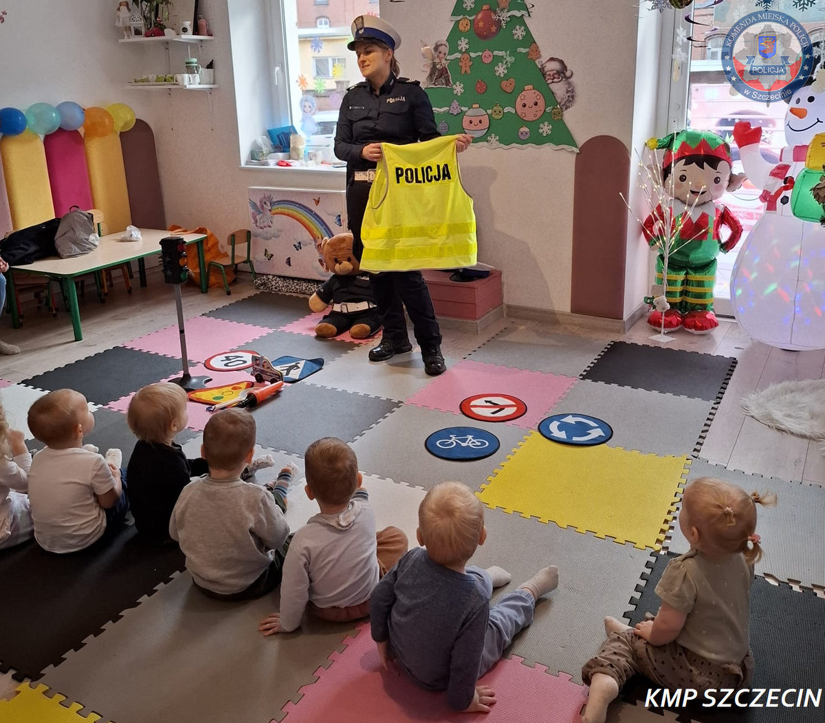 Funkcjonariuszka z Wydziału Ruchu Drogowego Komendy Miejskiej Policji w Szczecinie spotkała się z dziećmi z placówek przy ul. Potulickiej i ul. Kopernika, by opowiedzieć o swojej pracy oraz przypomnieć najmłodszym zasady bezpiecznego poruszania się po drodze.