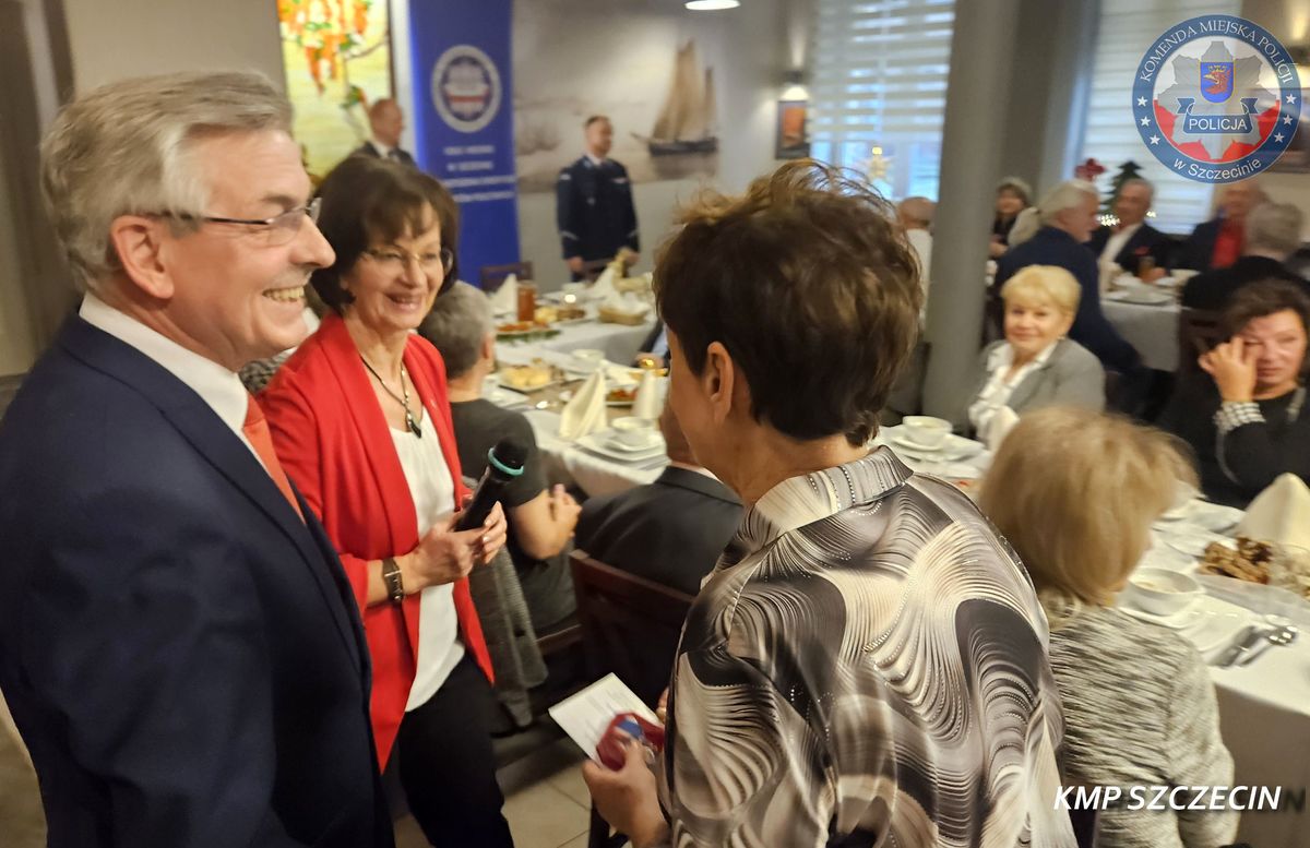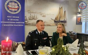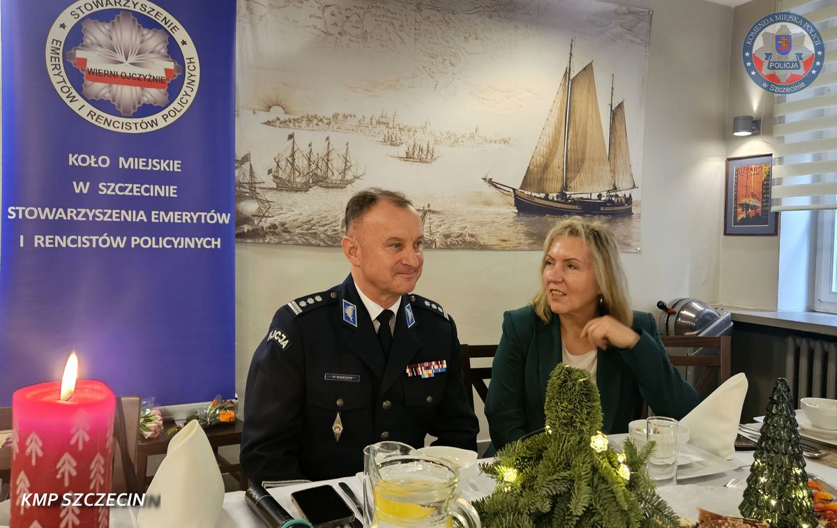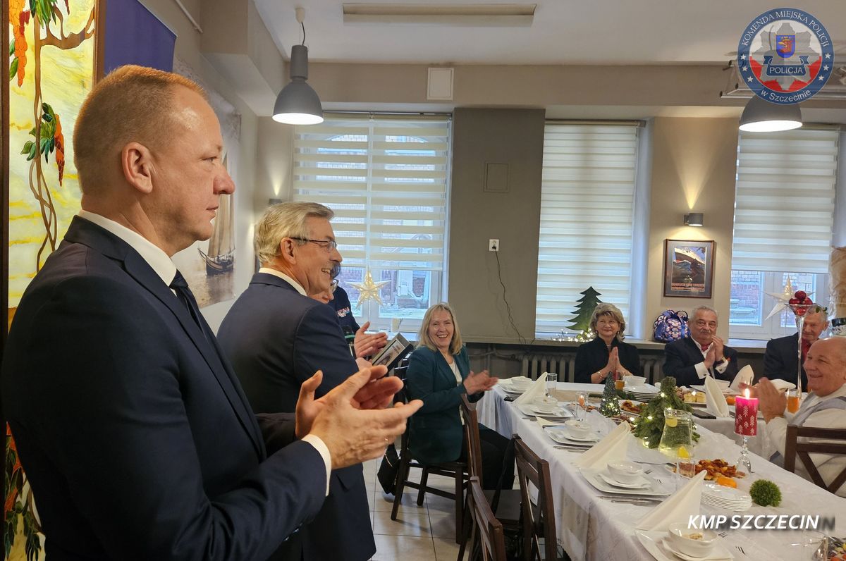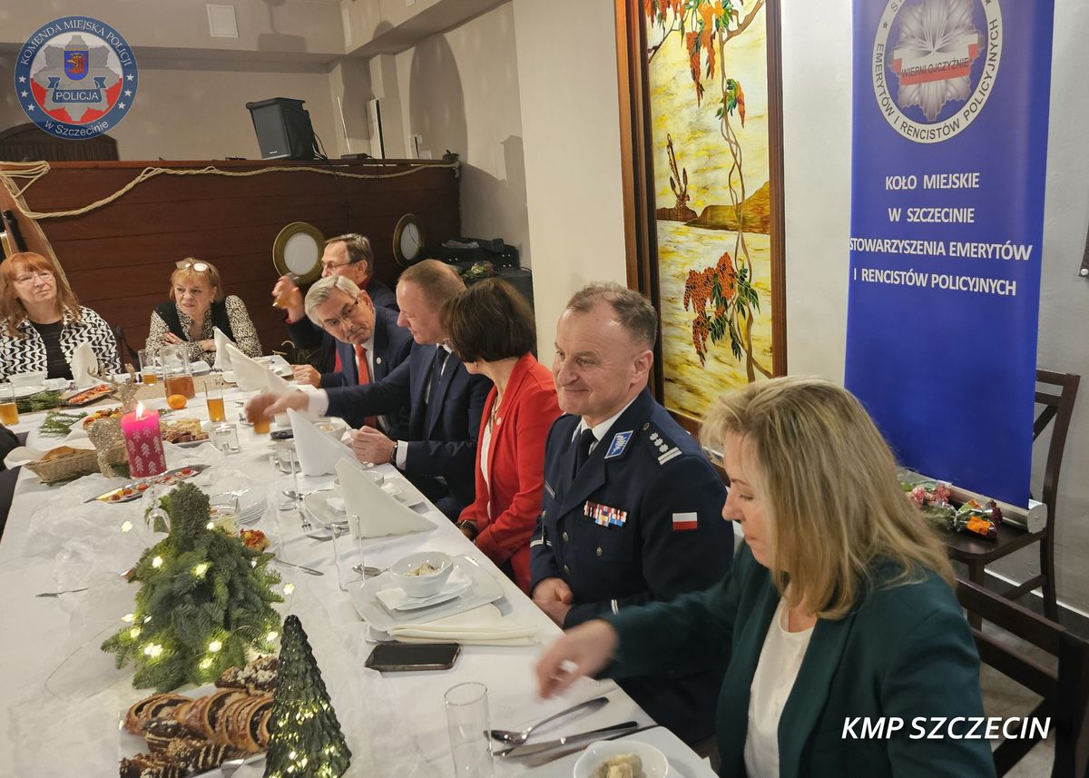Policyjni emeryci i renciści spotkali się na wspólnej wigilii w Klubie „Pod Masztami” w Szczecinie. W wydarzeniu uczestniczyli dr Marek Jasztal – Zastępca Komendanta Wojewódzkiego Policji w Szczecinie oraz insp. Piotr Makuch – Komendant Miejski Policji w Szczecinie.