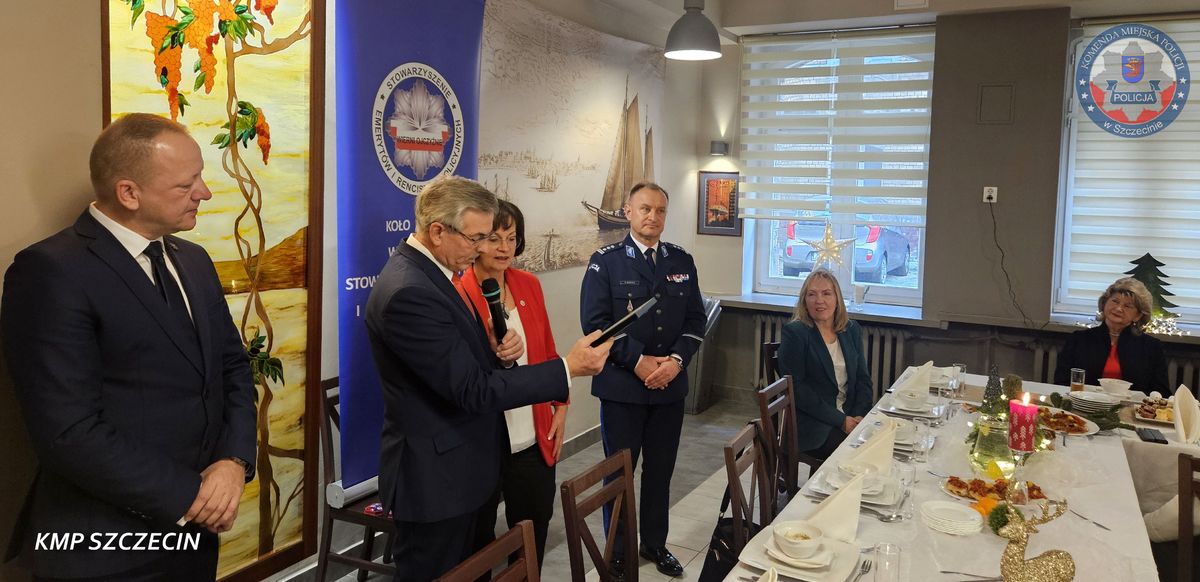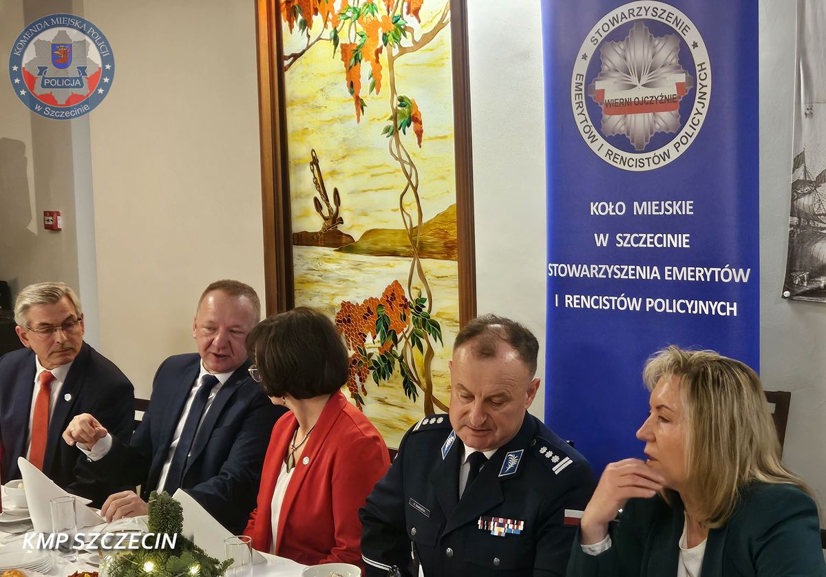W Klubie „Pod Masztami” odbyło się spotkanie wigilijne zorganizowane przez Koło Miejskie Stowarzyszenia Emerytów i Rencistów Policyjnych. W wydarzeniu udział wzięli dr Marek Jasztal – Zastępca Komendanta Wojewódzkiego Policji w Szczecinie oraz insp. Piotr Makuch – Komendant Miejski Policji w Szczecinie.