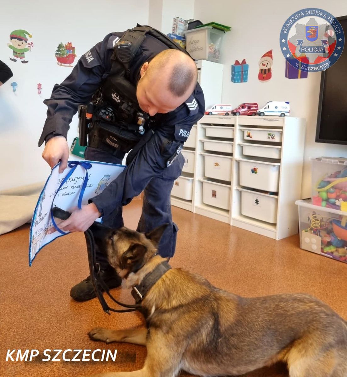 Podczas spotkania rozmawiali o roli psów służbowych w Policji oraz o tym, jak ważne zadania pełnią one w codziennej służbie. Dostosowując przekaz do specyfiki placówki oraz wyjątkowych potrzeb uczęszczających do niej dzieci, poruszyliśmy również temat bezpieczeństwa - w szczególności w sytuacjach, z którymi najmłodsi mogą spotkać się na co dzień.