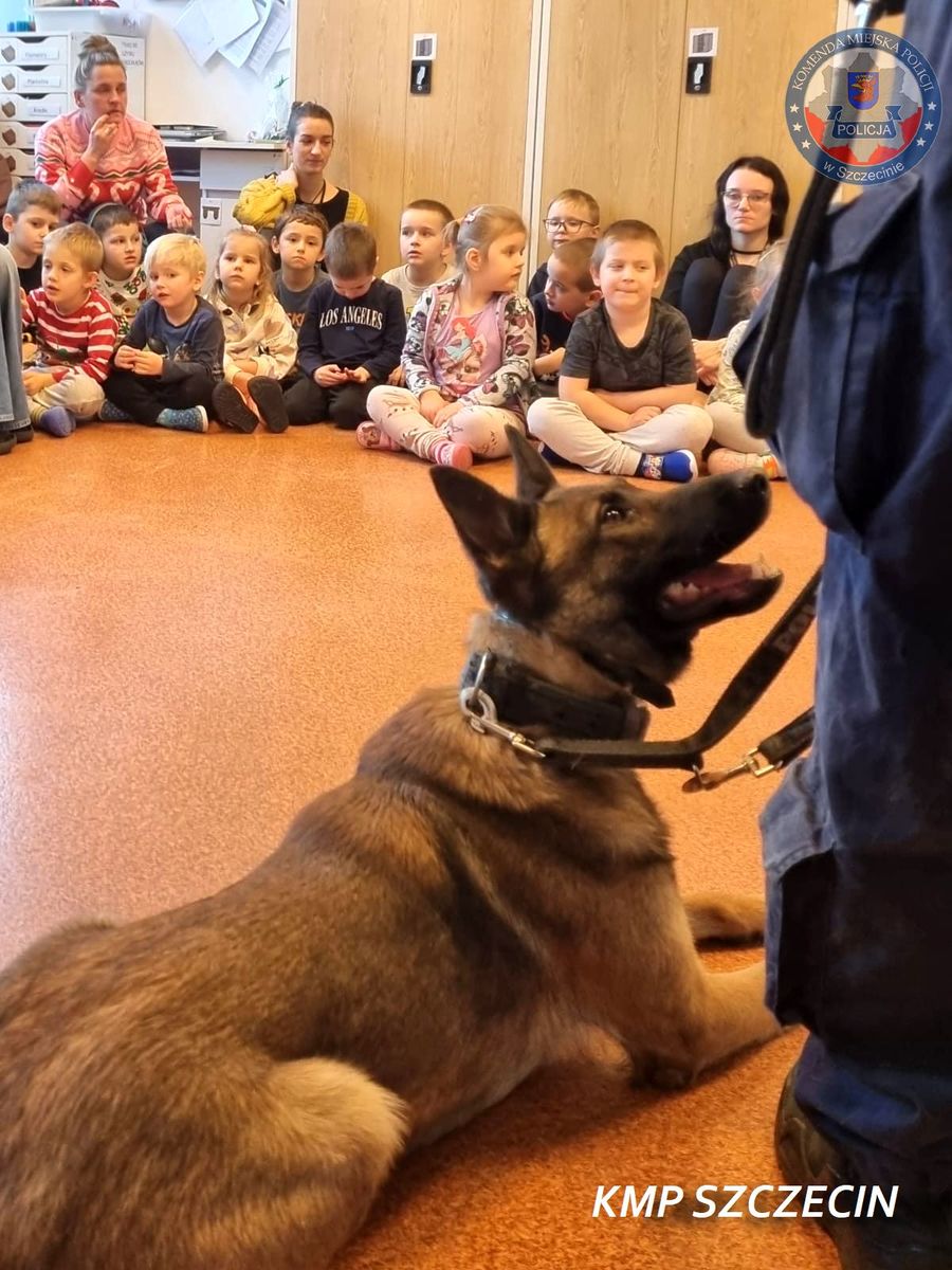 Pies policyjny odwiedził dzieci w przedszkolu terapeutycznym