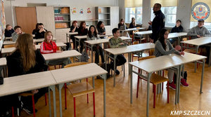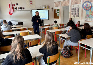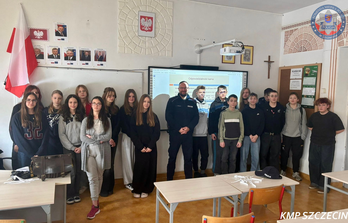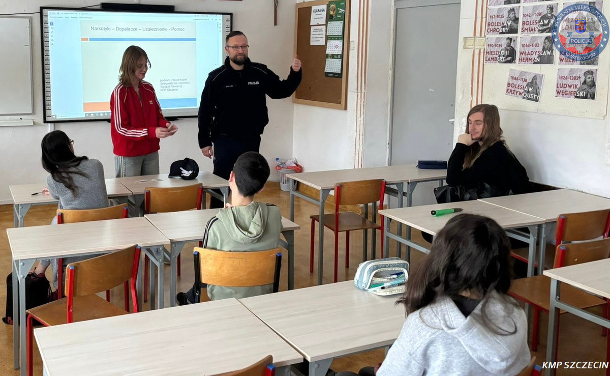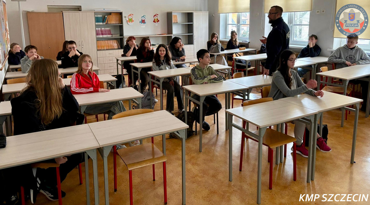 Funkcjonariusz Wydziału Prewencji Komendy Miejskiej Policji w Szczecinie przeprowadził zajęcia edukacyjne w Szkole Podstawowej nr 3 im. Juliusza Słowackiego w Szczecinie. Warsztaty skierowane były do uczniów klas ósmych i dotyczyły przeciwdziałania przemocy rówieśniczej oraz przestępczości narkotykowej.