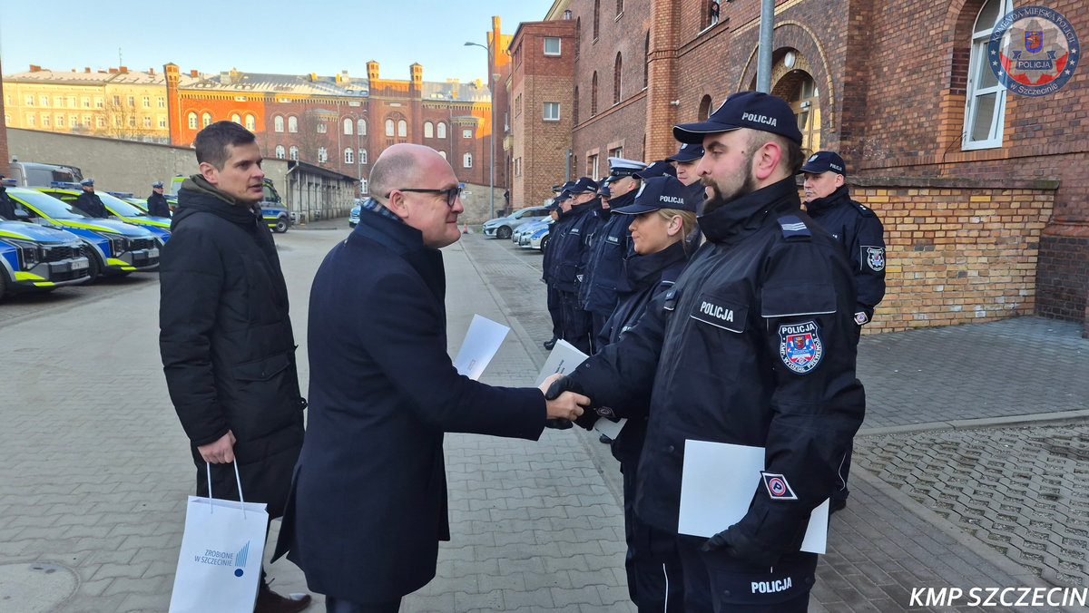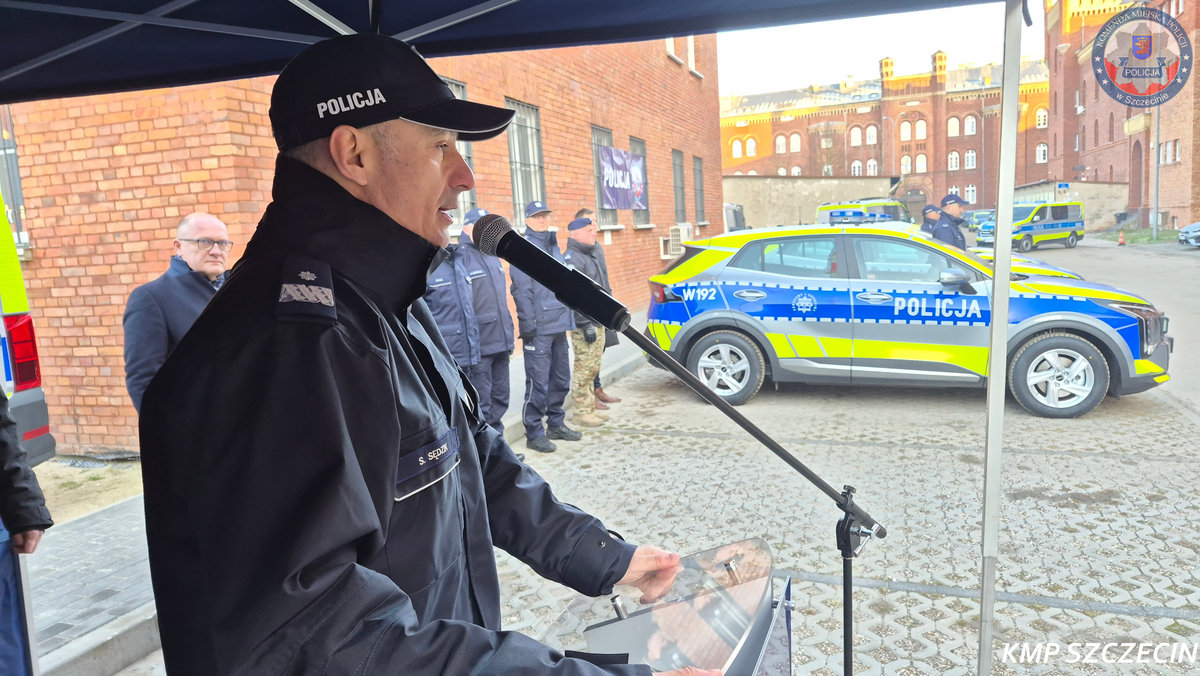W środę (21 stycznia 2026 r.) w Szczecinie odbyła się uroczystość symbolicznego przekazania kluczyków do nowych radiowozów Skoda Octavia kombi oraz Kia Sportage, które zasiliły flotę Komendy Miejskiej Policji w Szczecinie.