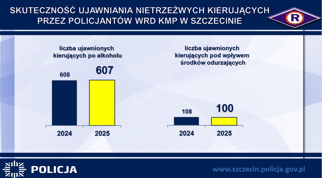 Komendant podczas odprawy rocznej podkreślił wagę bezpieczeństwa na drodze, wskazując tym samym główne czynniki. Zaliczamy do nich m.in.: nadmierną prędkość, wymuszanie pierwszeństwa i nieprawidłowe zachowanie wobec pieszych oraz niezachowanie bezpiecznej odległości między pojazdami. W 2025 roku zatrzymano ponad 600 kierujących pod wpływem alkoholu oraz 100 kierujących znajdujących się pod wpływem środków odurzających. Policjanci Wydziału Ruchu Drogowego w ubiegłym roku interweniowali blisko 55 tysięcy razy, w związku z niestosowaniem się do przepisów prawa o ruchu drogowym.