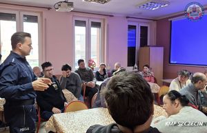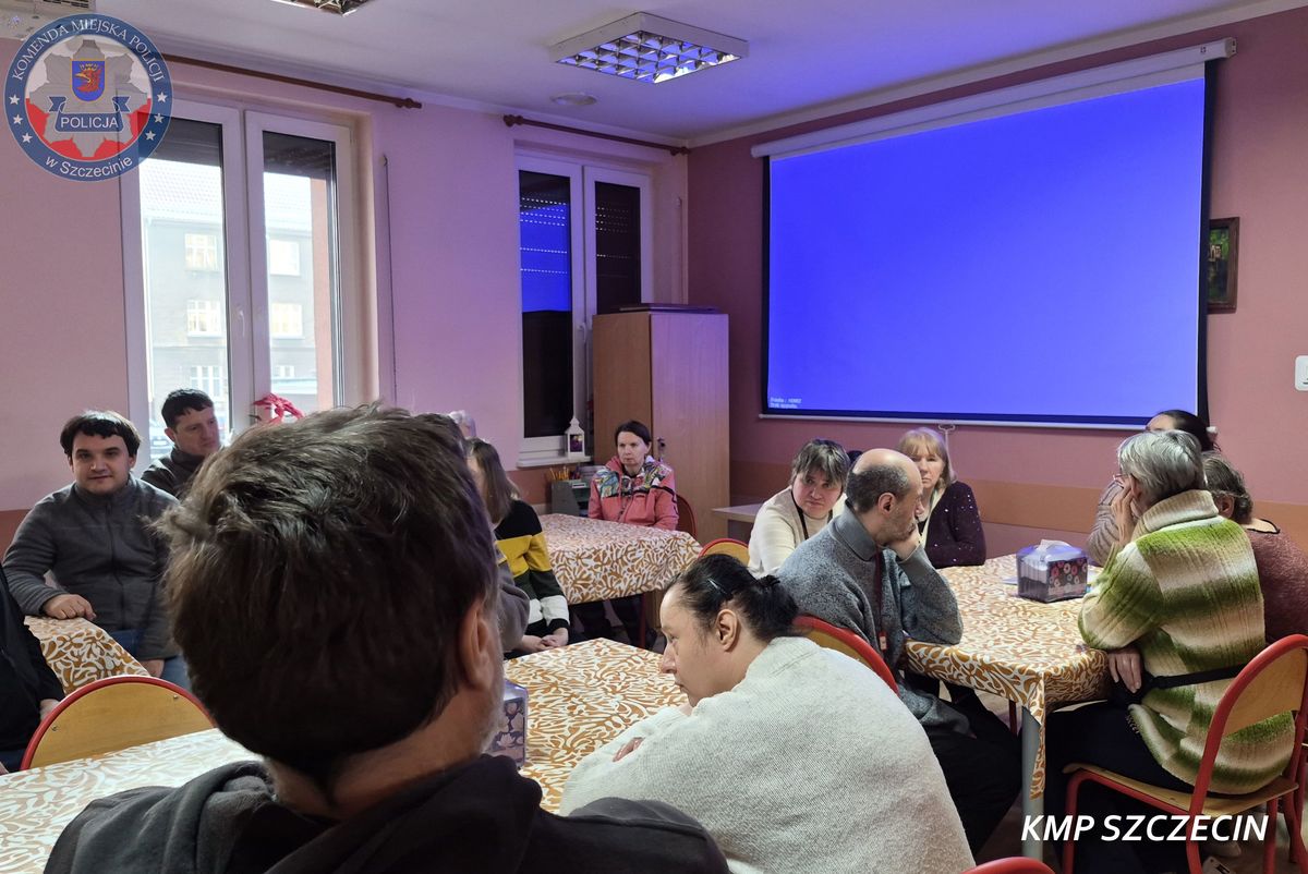 Oficerowie prasowi Komendy Miejskiej Policji w Szczecinie odwiedzili Środowiskowy Dom Samopomocy, by porozmawiać o służbie, bezpieczeństwie i możliwościach uzyskania pomocy.