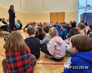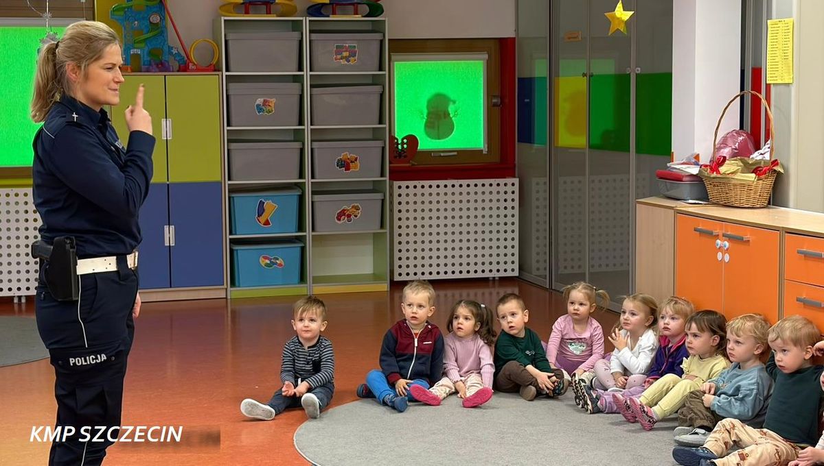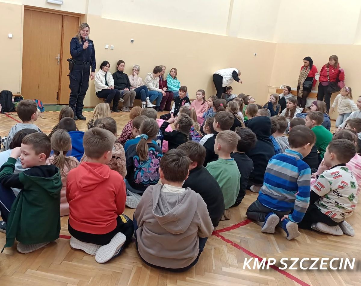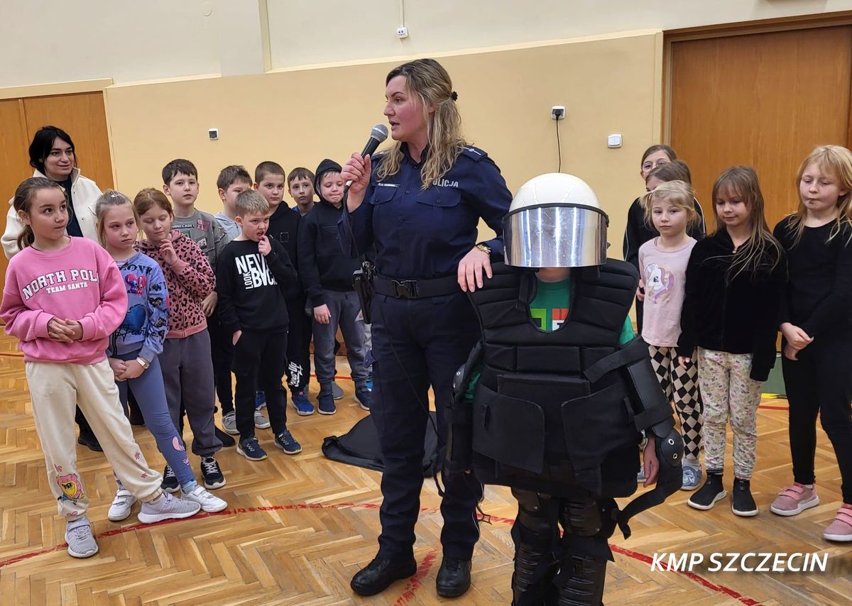 Podczas spotkania z dziećmi uczestniczącymi w półkolonii policjantka z Wydziału Prewencji KMP w Szczecinie omówiła najważniejsze zasady bezpiecznego spędzania ferii. Mundurowa przypomniała o zagrożeniach związanych z wchodzeniem na zamarznięte akweny, zasadach kontaktu z osobami obcymi oraz o tym, jak reagować w sytuacjach niebezpiecznych.