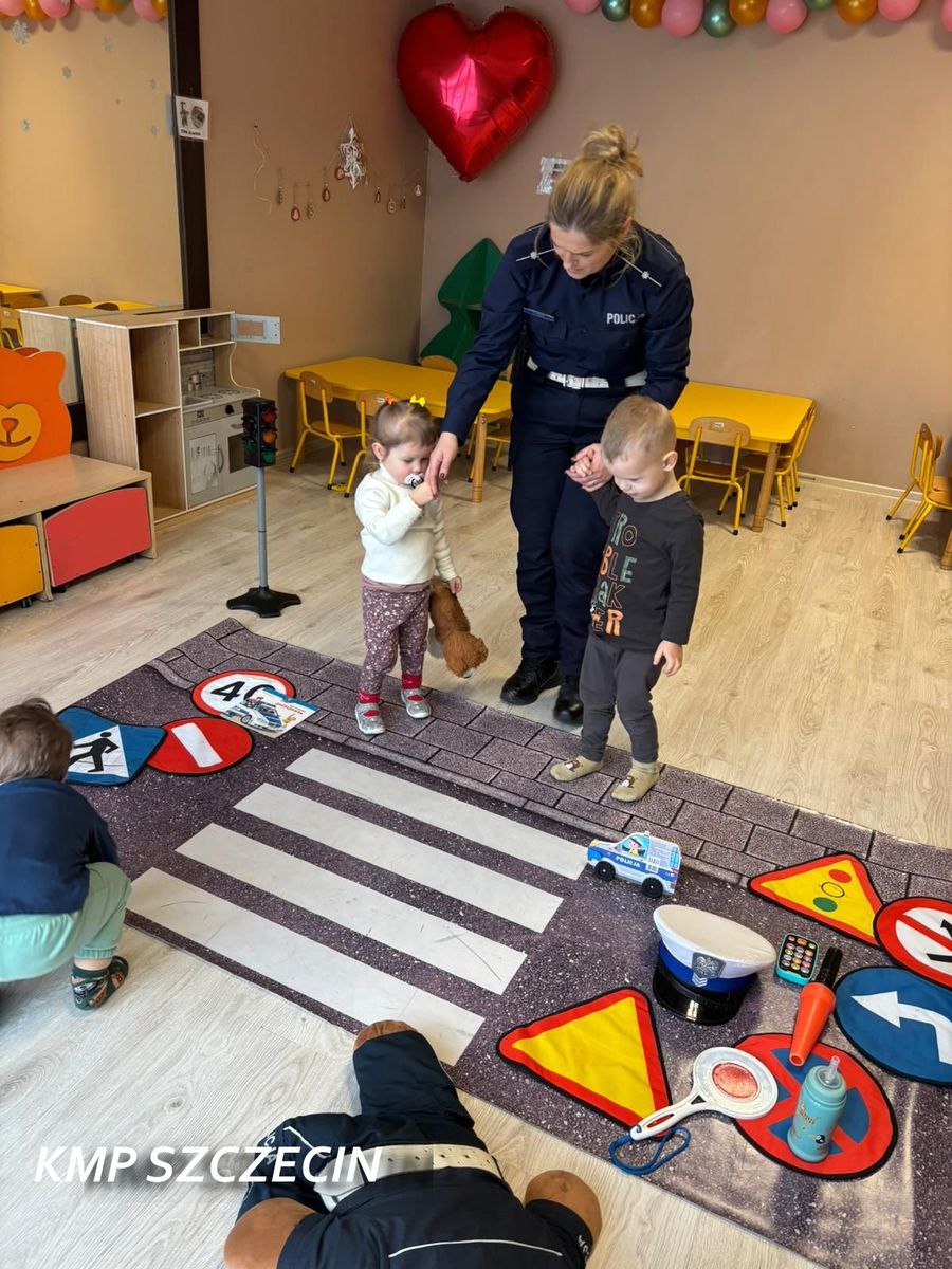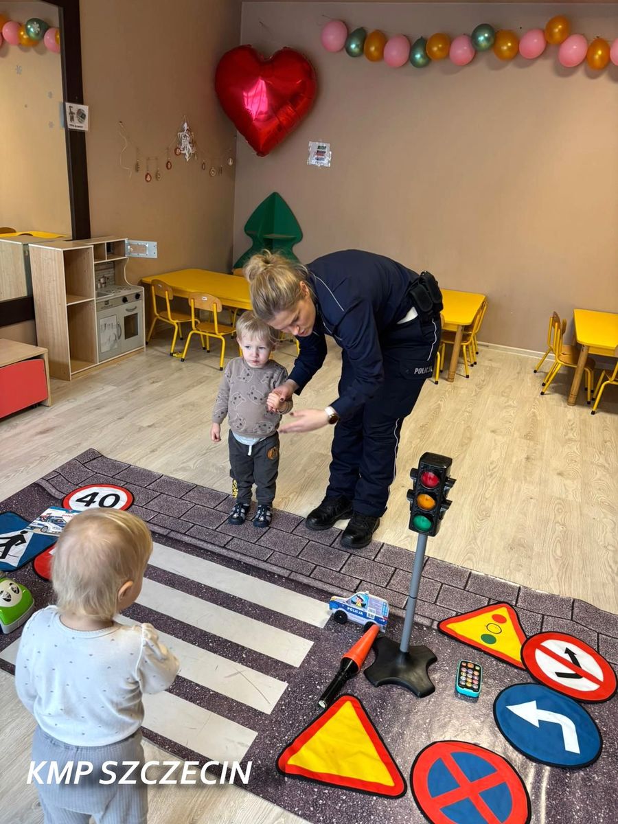 Równolegle policjantka ze szczecińskiej drogówki odwiedziła Klub Dziecięcy „Małe Rączki” przy ul. Witkiewicza, gdzie w przystępny i atrakcyjny sposób przybliżyła najmłodszym zasady bezpiecznego poruszania się po drogach oraz zachowania w sytuacjach potencjalnie niebezpiecznych.