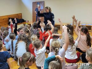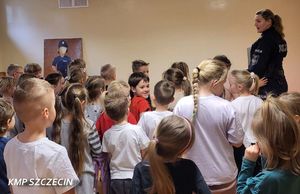 Funkcjonariusze Wydziału Prewencji KMP w Szczecinie odwiedzili dzieci wypoczywające na półkolonii w Szkole Podstawowej nr 20 przy ul. Dobrzyńskiej oraz oddziały przedszkolne Szkoły Podstawowej nr 51 przy ul. Mikołajczyka.