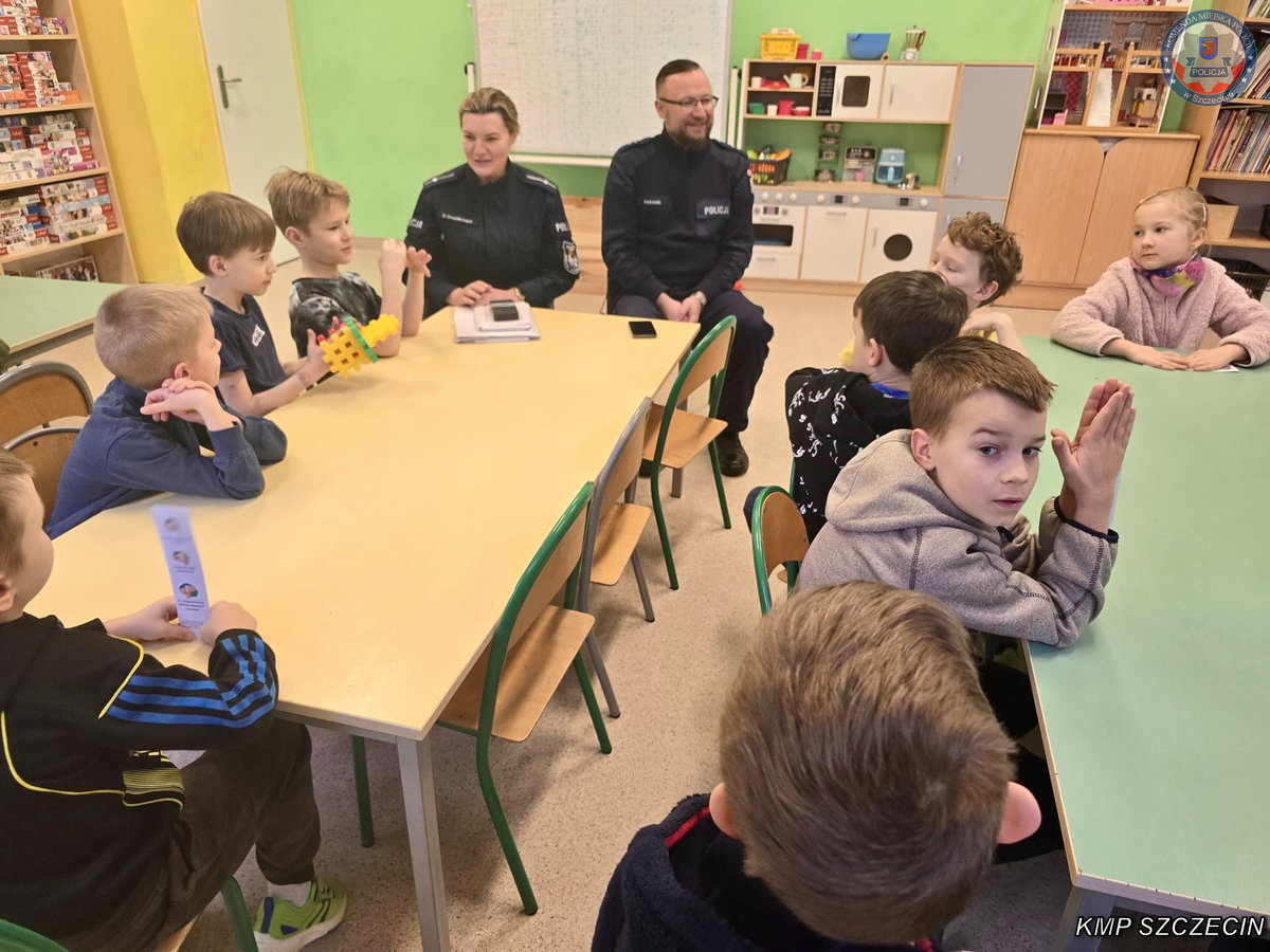 Podczas wizyt policjanci omawiali szeroko rozumiane bezpieczeństwo dzieci i młodzieży - zarówno w kontekście zagrożeń typowo zimowych, jak i codziennych sytuacji, z którymi najmłodsi mogą spotkać się w czasie wolnym.