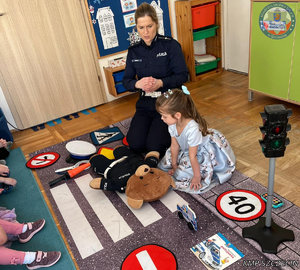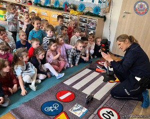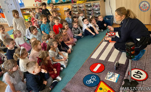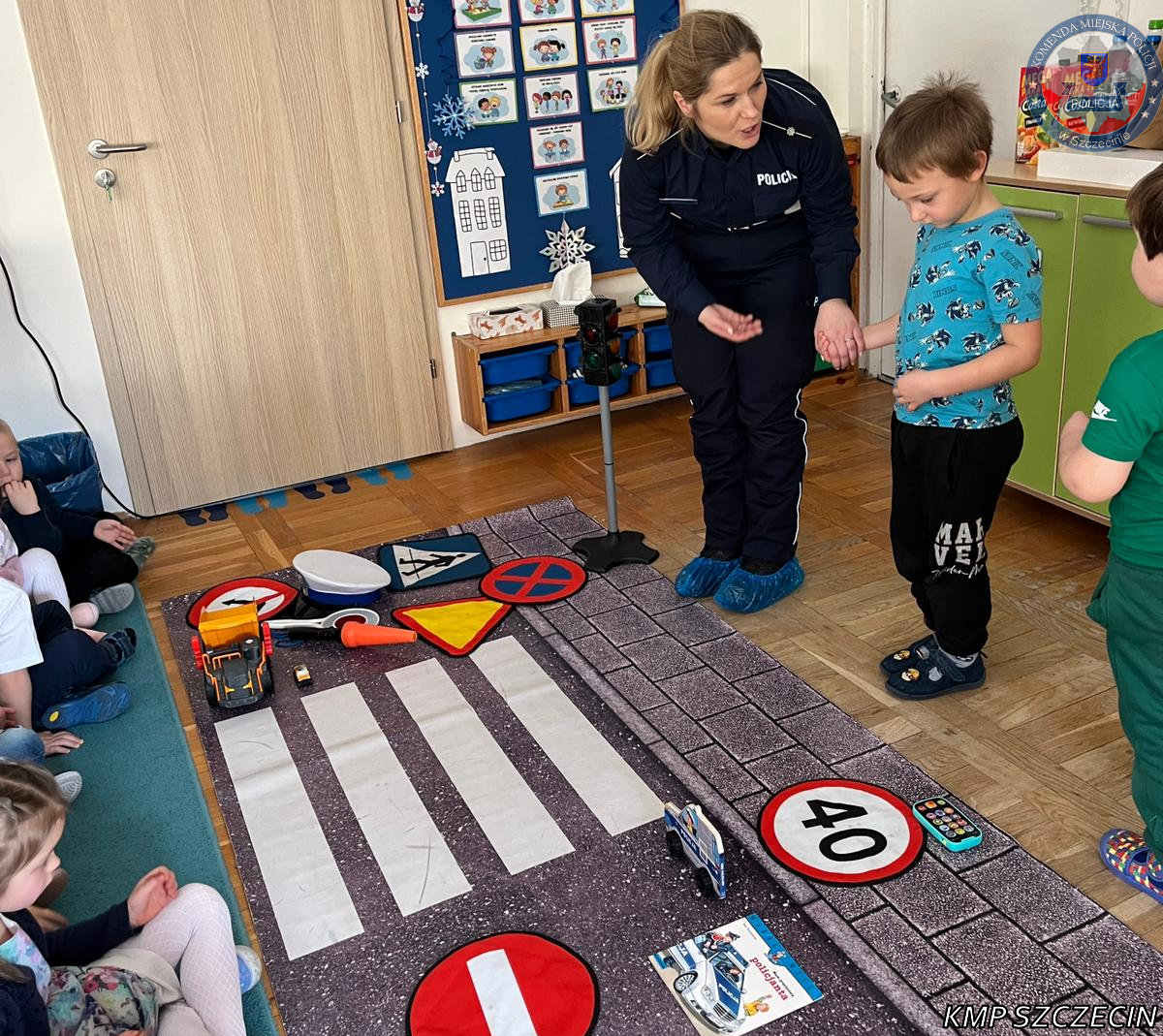 Funkcjonariuszka z Wydziału Ruchu Drogowego Komendy Miejskiej Policji w Szczecinie przeprowadziła zajęcia profilaktyczne dla dzieci z Przedszkole Publiczne nr 62 „Baśniowe” przy ul. Jasnej w Szczecinie.