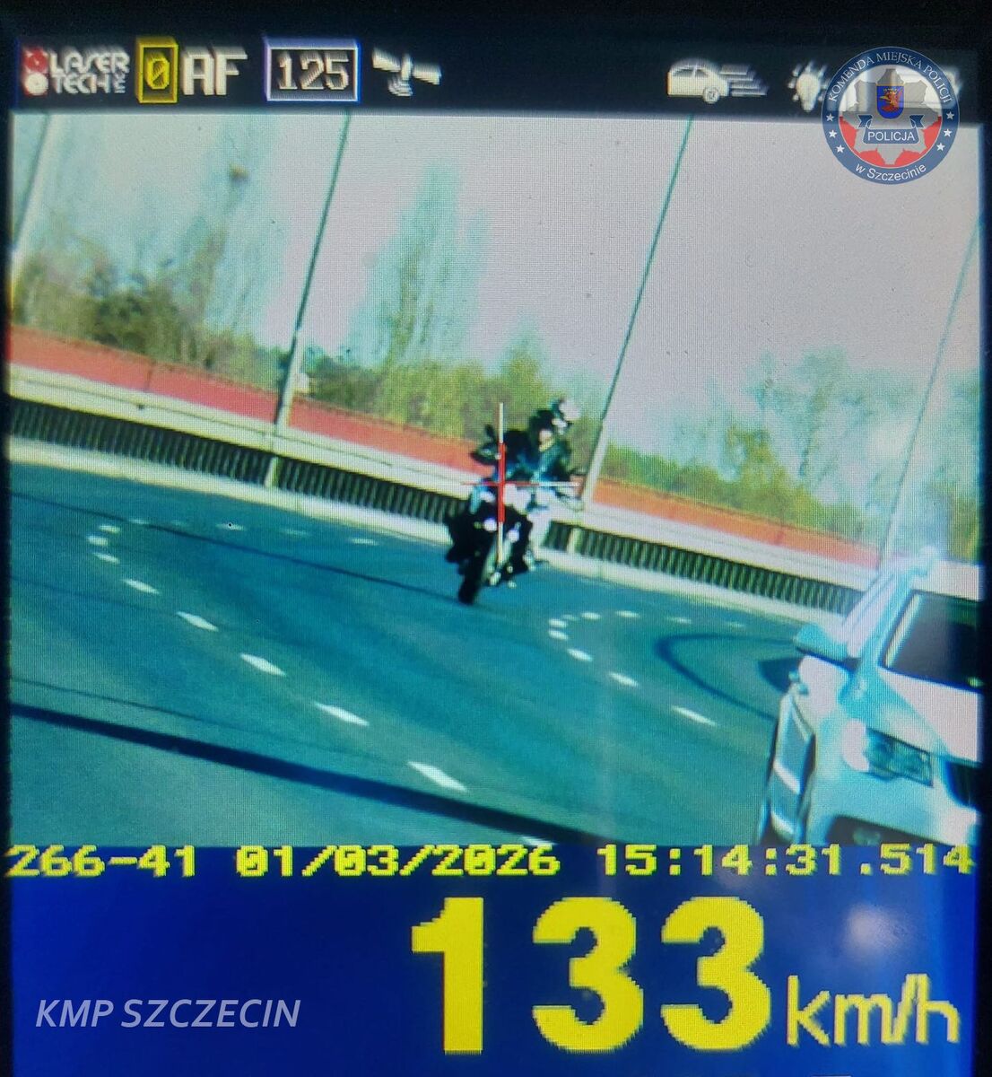 Pierwsze objawy wiosny spowodowały, że na ulicach Szczecina wzrosła liczba motocyklistów. W minioną niedzielę policjanci ze szczecińskiej „drogówki” kontrolując prędkość na Moście Pionierów ujawnili motocykl BMW poruszający się ze znaczną prędkością. Mundurowi, korzystając z ręcznego miernika prędkości, zarejestrowali jego prędkość. Wynik to 133 km/h w terenie zabudowanym, gdzie na tym odcinku drogi obowiązuje ograniczenie prędkości do 70 km/h. Jak się podczas interwencji okazało, to nie pierwsze tego typu przewinienie motocyklisty. Wcześniej był już ukarany za lekceważenie ograniczeń prędkości.