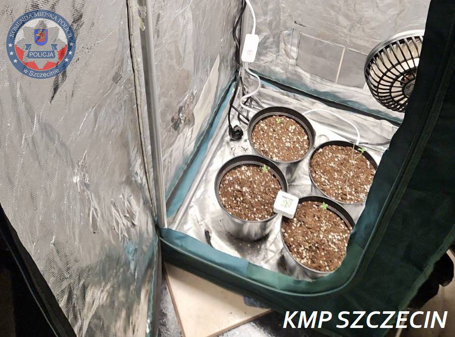 Do zatrzymań doszło w jednym z mieszkań na terenie podszczecińskiej miejscowości. W trakcie przeszukania policjanci ujawnili środki odurzające oraz substancje psychotropowe, a także elementy infrastruktury służącej do prowadzenia nielegalnej uprawy. Prowadzący na miejscu czynności procesowe funkcjonariusze z Wydziału Dochodzeniowo – Śledczego Komendy Miejskiej Policji w Szczecinie zabezpieczyli między innymi sadzonki konopi, a także namiot uprawowy, oraz akcesoria wykorzystywane do prowadzenia domowej plantacji.