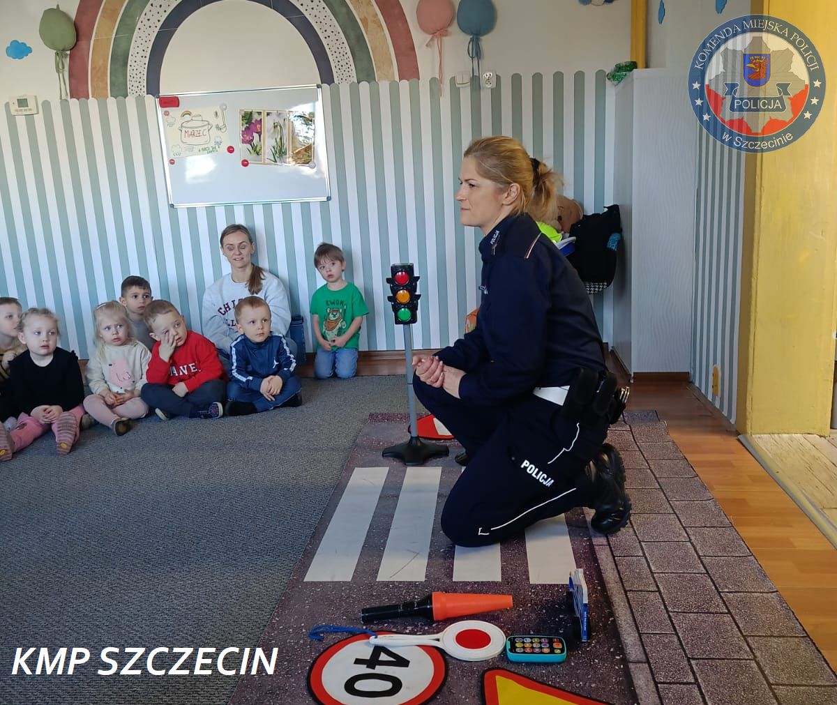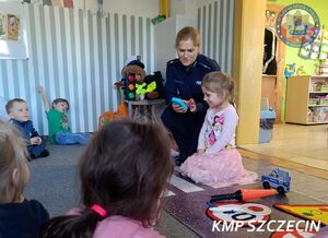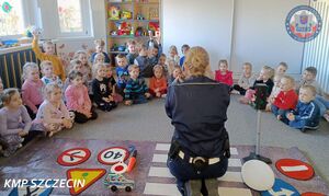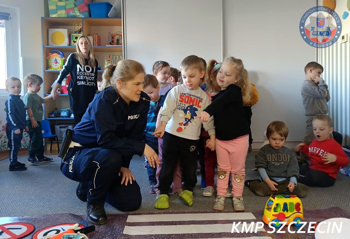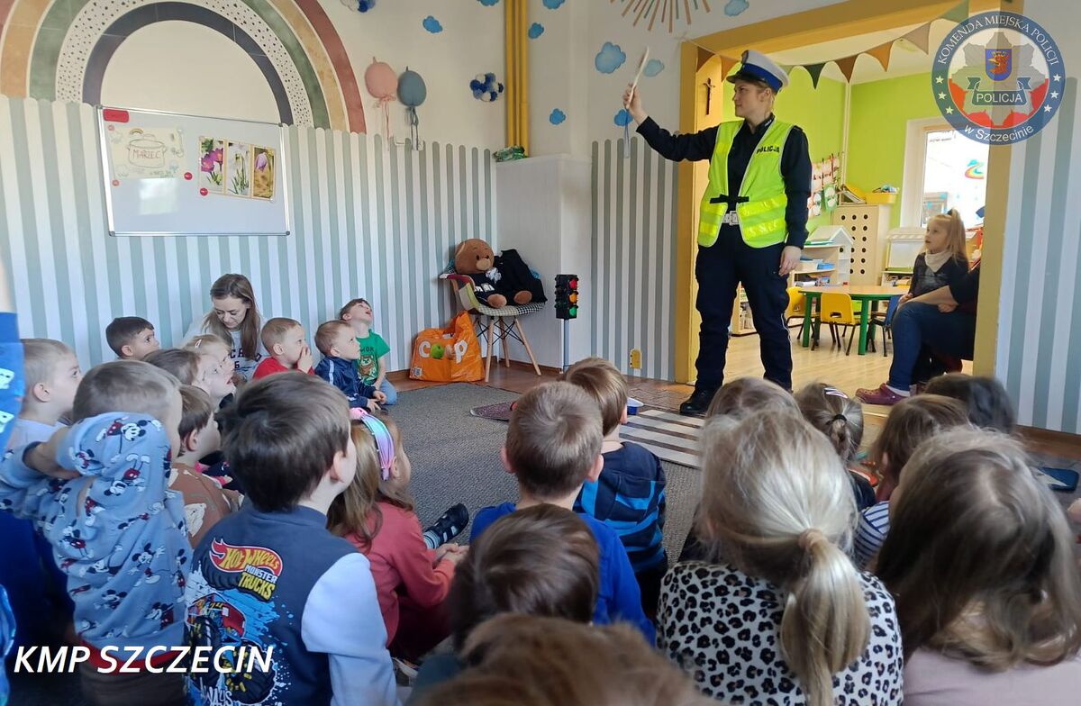 Przedszkolaki z filii Przedszkola Publicznego nr 45. w Szczecinie przy ul. Wiślanej miały wyjątkowego gościa. Placówkę odwiedziła policjantka z Komendy Miejskiej Policji w Szczecinie, na co dzień pełniąca służbę w Wydziale Ruchu Drogowego. Spotkanie miało charakter edukacyjny i było częścią działań profilaktycznych prowadzonych przez policję w zakresie bezpieczeństwa w ruchu drogowym.