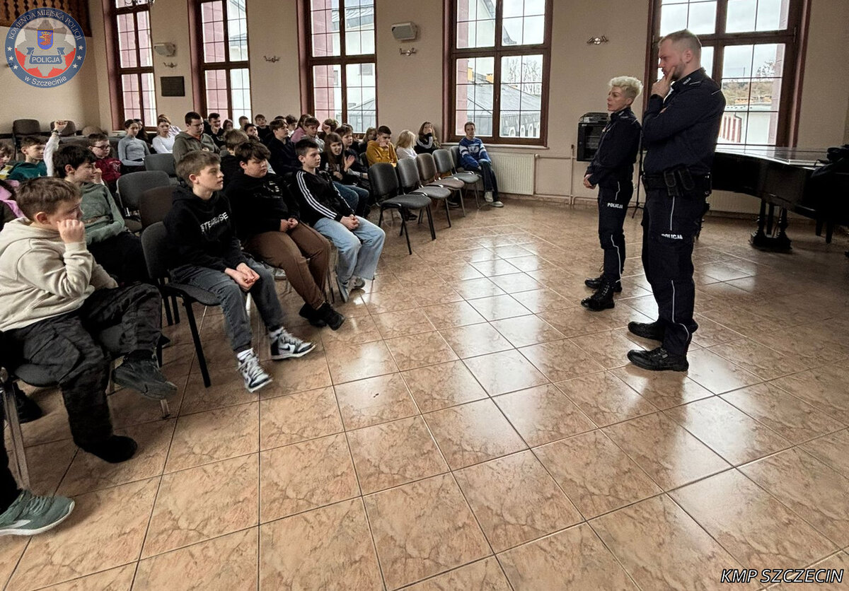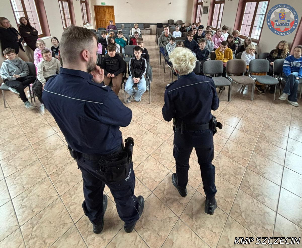 Funkcjonariusze Wydziału Prewencji Komisariatu Policji Szczecin Pogodno przeprowadzili spotkanie profilaktyczne z uczniami Prywatnej Szkoły Podstawowej „Z Pasją” przy ul. Jana Bosko, poświęcone problematyce przemocy rówieśniczej.