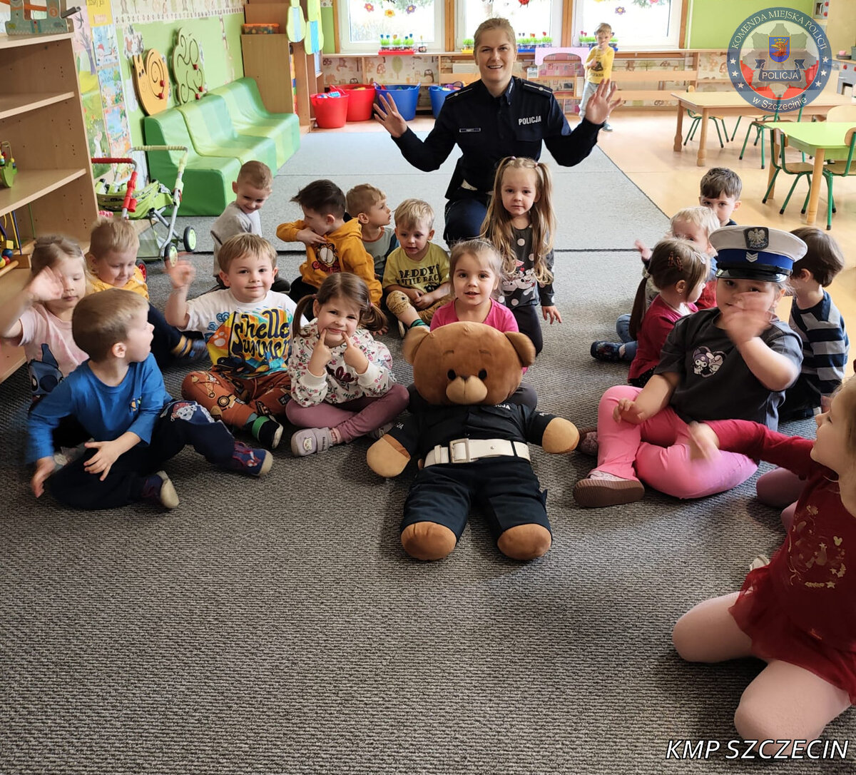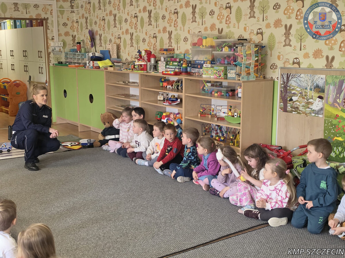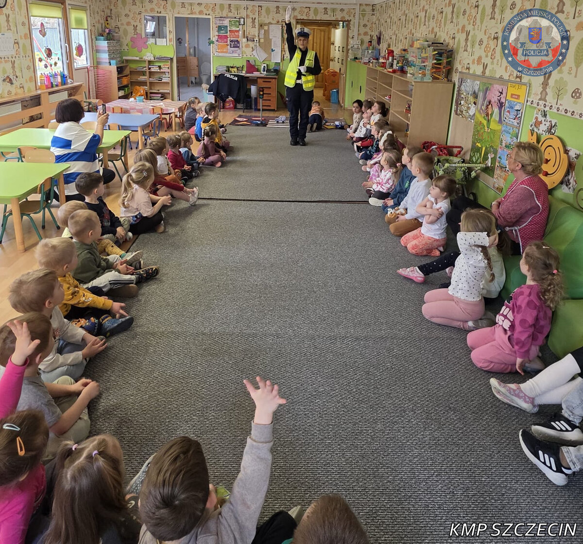 Na początku miesiąca policjantka Wydziału Ruchu Drogowego Komendy Miejskiej Policji w Szczecinie odwiedziła dzieci z Przedszkola Publicznego nr 45 przy ul. Czwójdzińskiego.