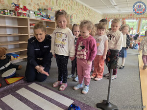 Podczas spotkania funkcjonariuszka omówiła z najmłodszymi podstawowe zasady bezpieczeństwa w ruchu drogowym. Dzieci dowiedziały się, jak prawidłowo przechodzić przez jezdnię, jakie znaczenie mają sygnalizatory świetlne oraz dlaczego warto korzystać z elementów odblaskowych.