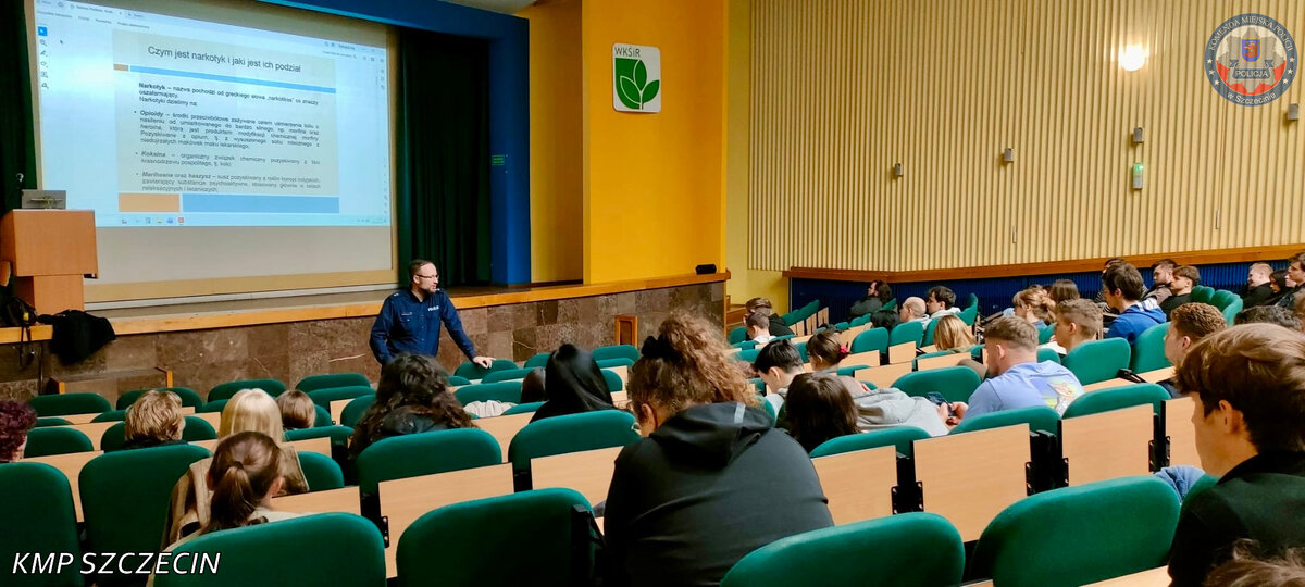 Spotkanie odbyło się w Katedrze Wydziału Kształtowania Środowiska i Rolnictwa Zachodniopomorskiego Uniwersytetu Technologicznego w Szczecinie i było skierowane do studentów pierwszego roku. W jego trakcie funkcjonariusz przedstawił konsekwencje zdrowotne oraz prawne wynikające z zażywania i posiadania narkotyków.