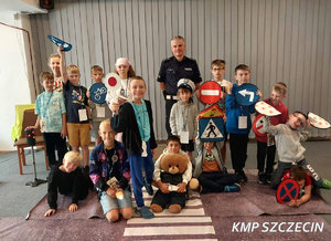 Funkcjonariusz Wydziału Ruchu Drogowego Komendy Miejskiej Policji w Szczecinie spotkał się z dziećmi uczestniczącymi w półkolonii organizowanej w Klubie 12. Szczecińskiej Dywizji Zmechanizowanej.